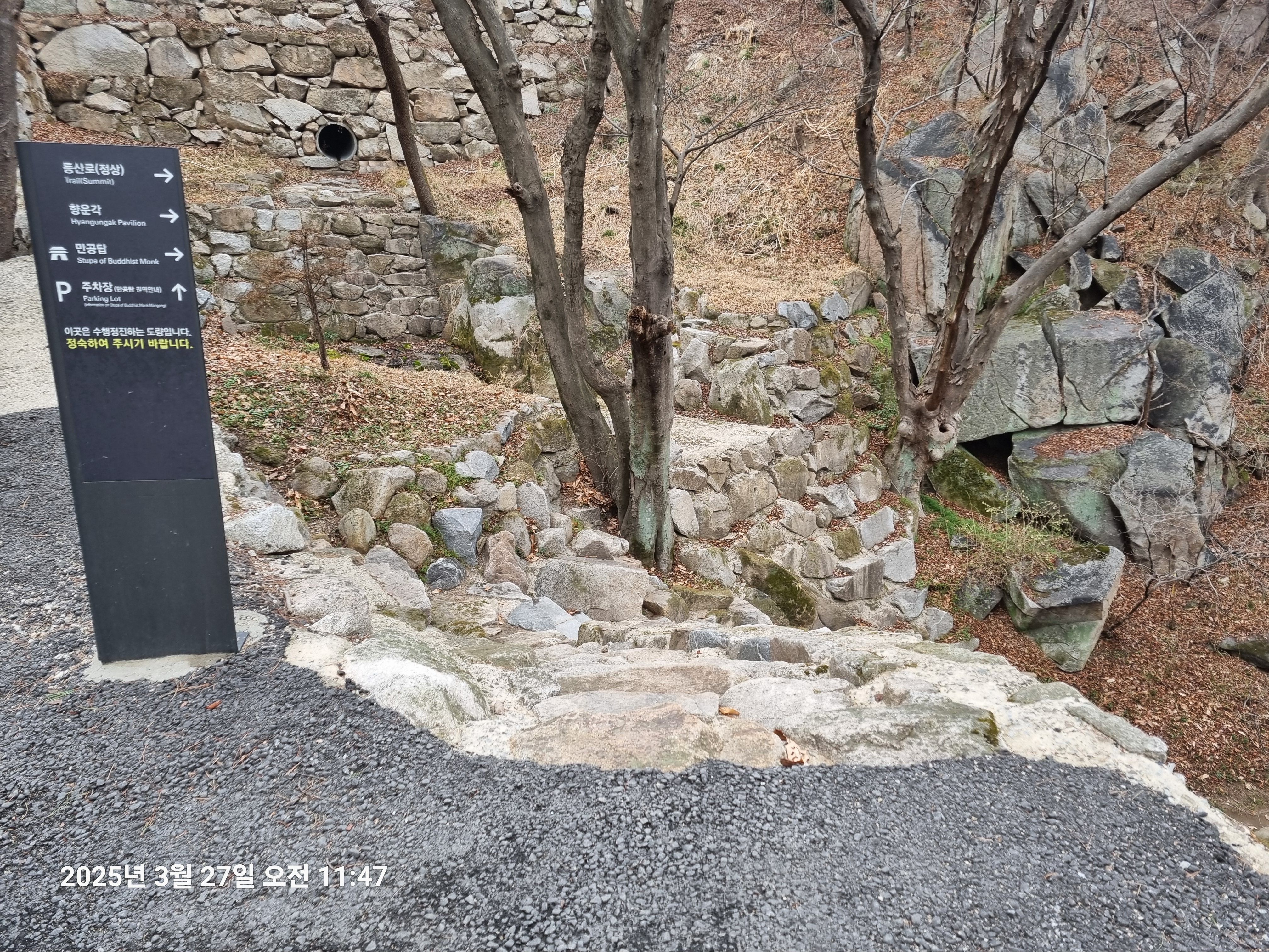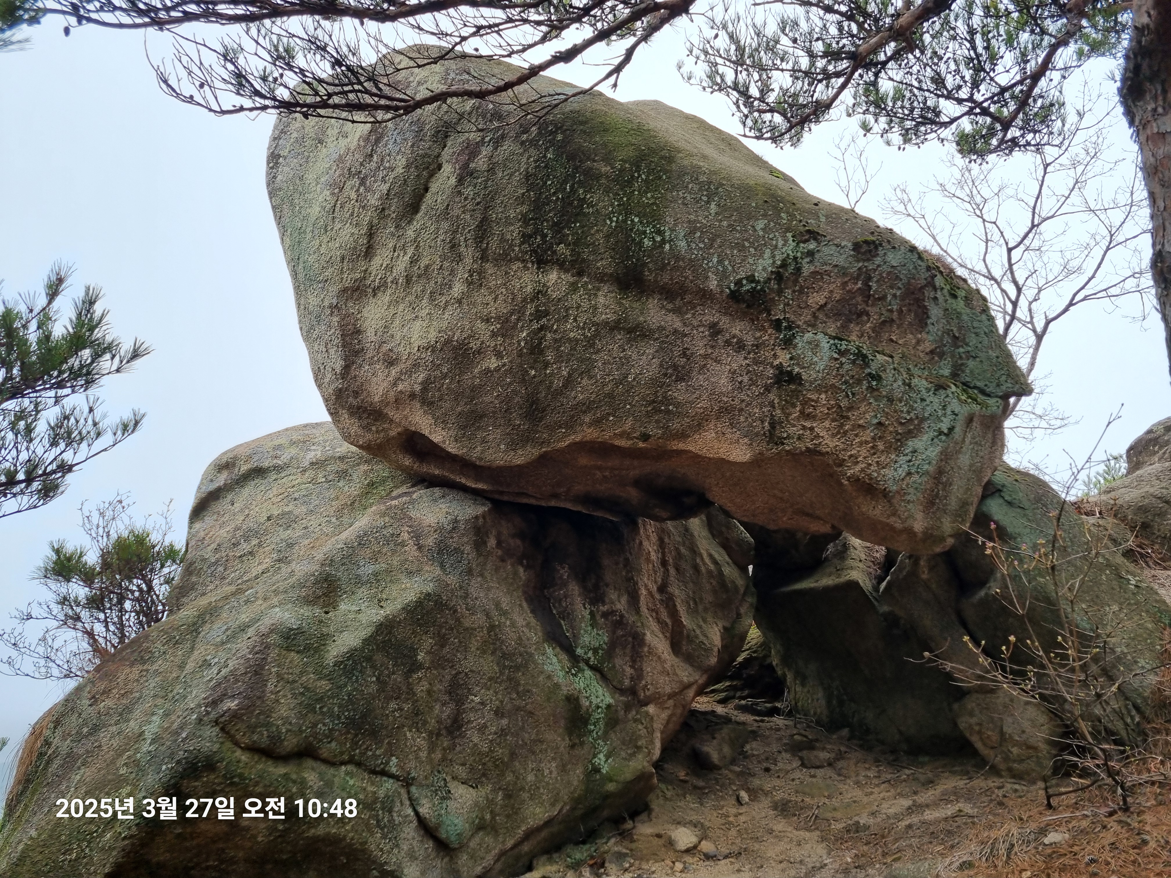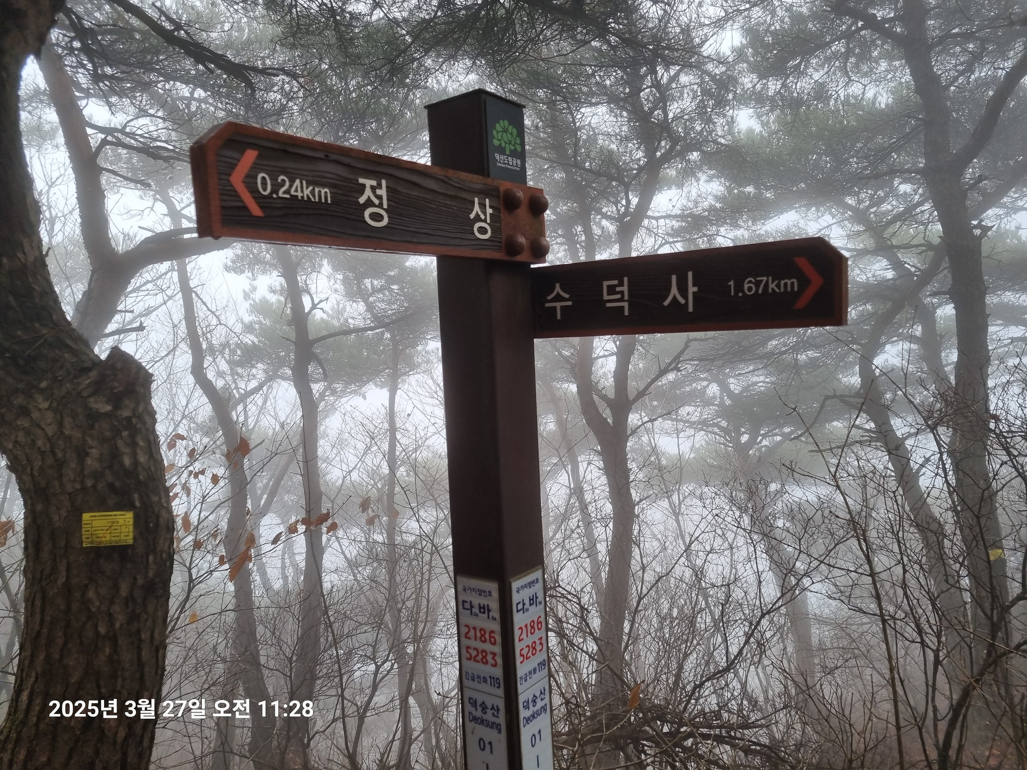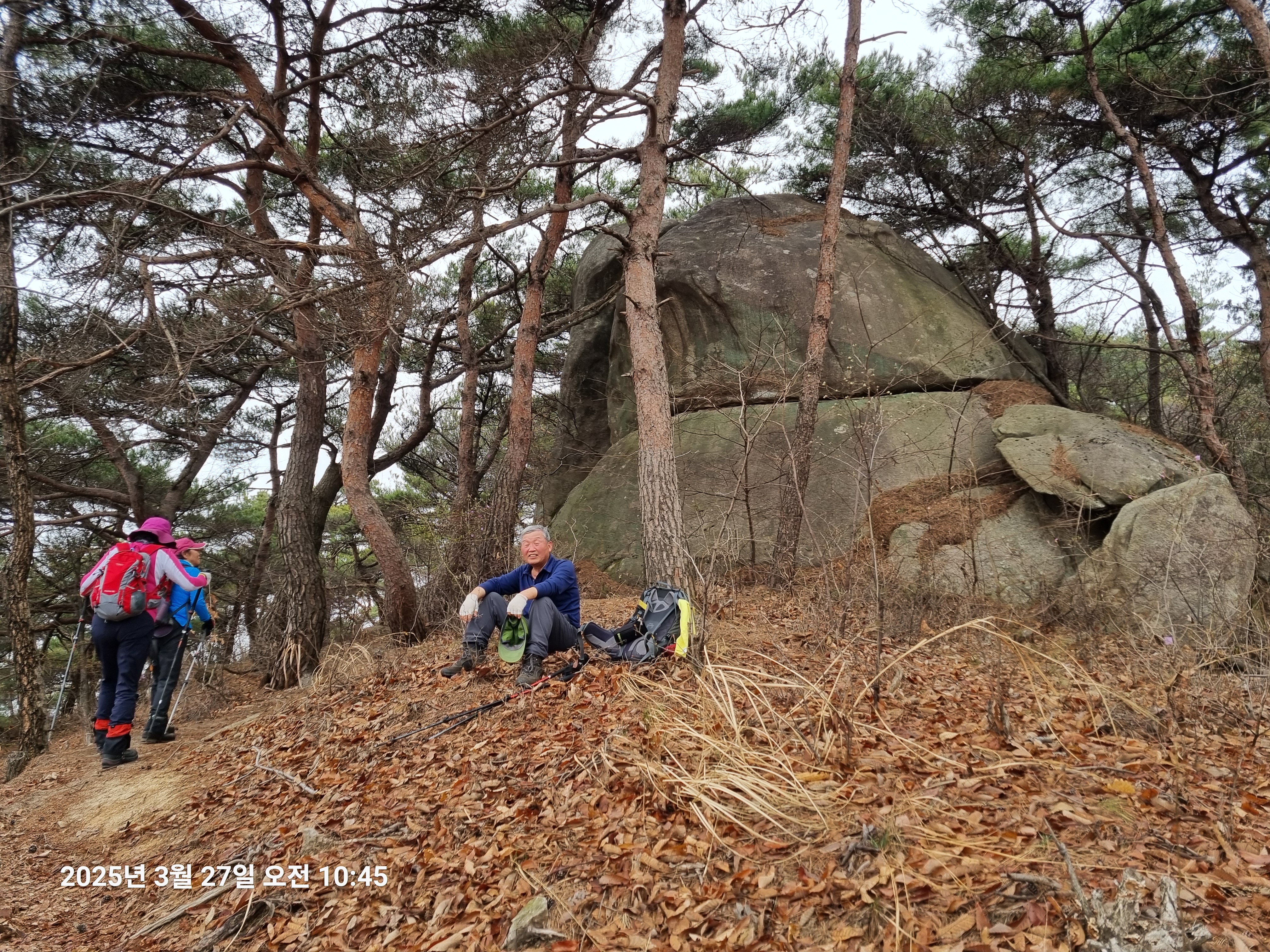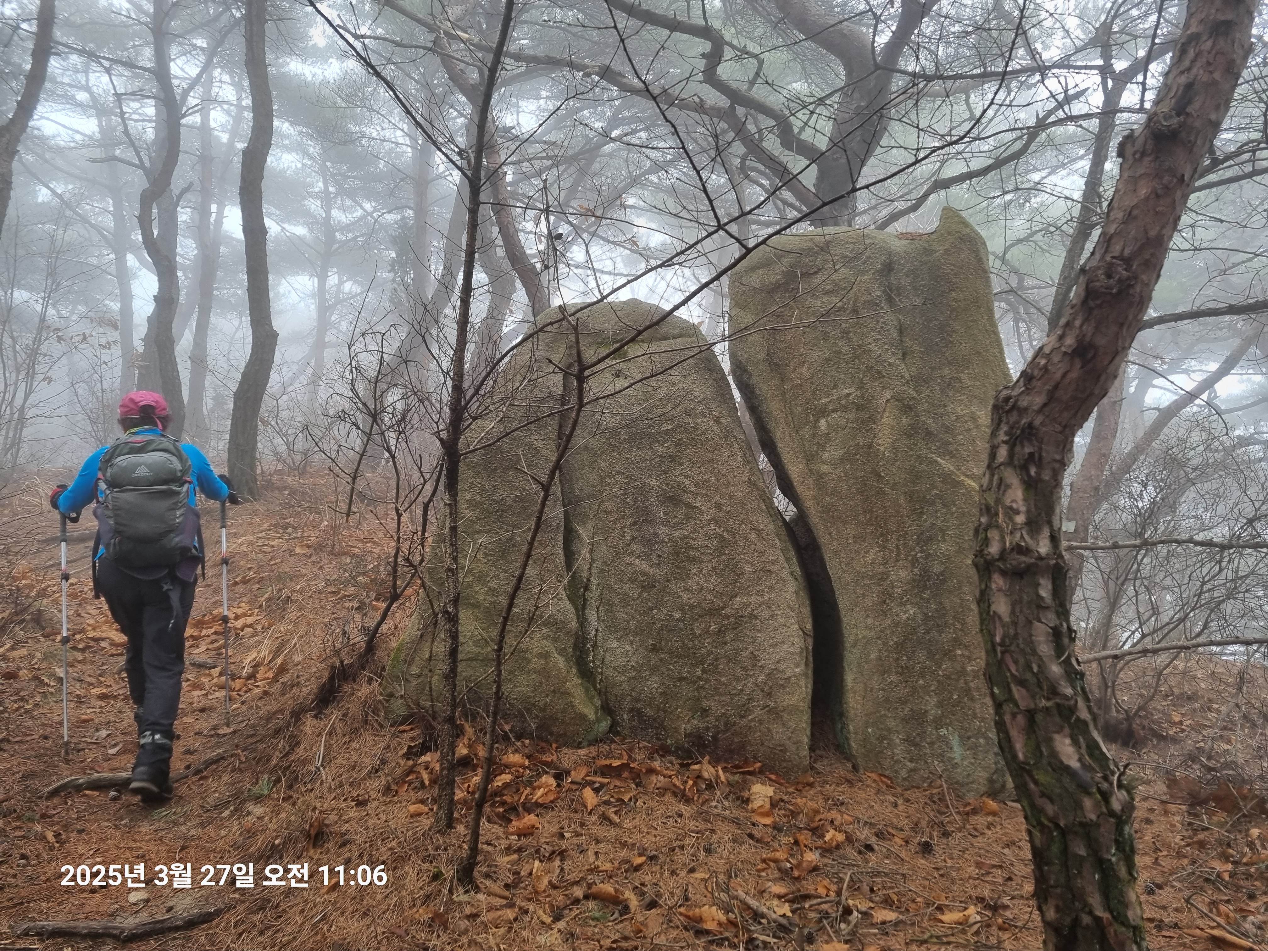 2025년 3월 27일 목요일. 친위 쿠데타에 대한 헌법재판소의 탄핵 결정이 하염없이 지체되고 있어, 행정부와 사법부 검찰 언론속에 있는 일류 엘리트 윤정권 부역자들에 의한 내란이 지속되고있다. 더불어 경상도 지방에 산불이 연일 강풍으로 계속되고 있어 우울하게 산행에 나선다. 또한 흐리고 운무가 끼어 조망이 전혀없는 날이다. 새마포산악회 시산제 날이다. 그래서 짧게 산행하고 뒷풀이를 하다.