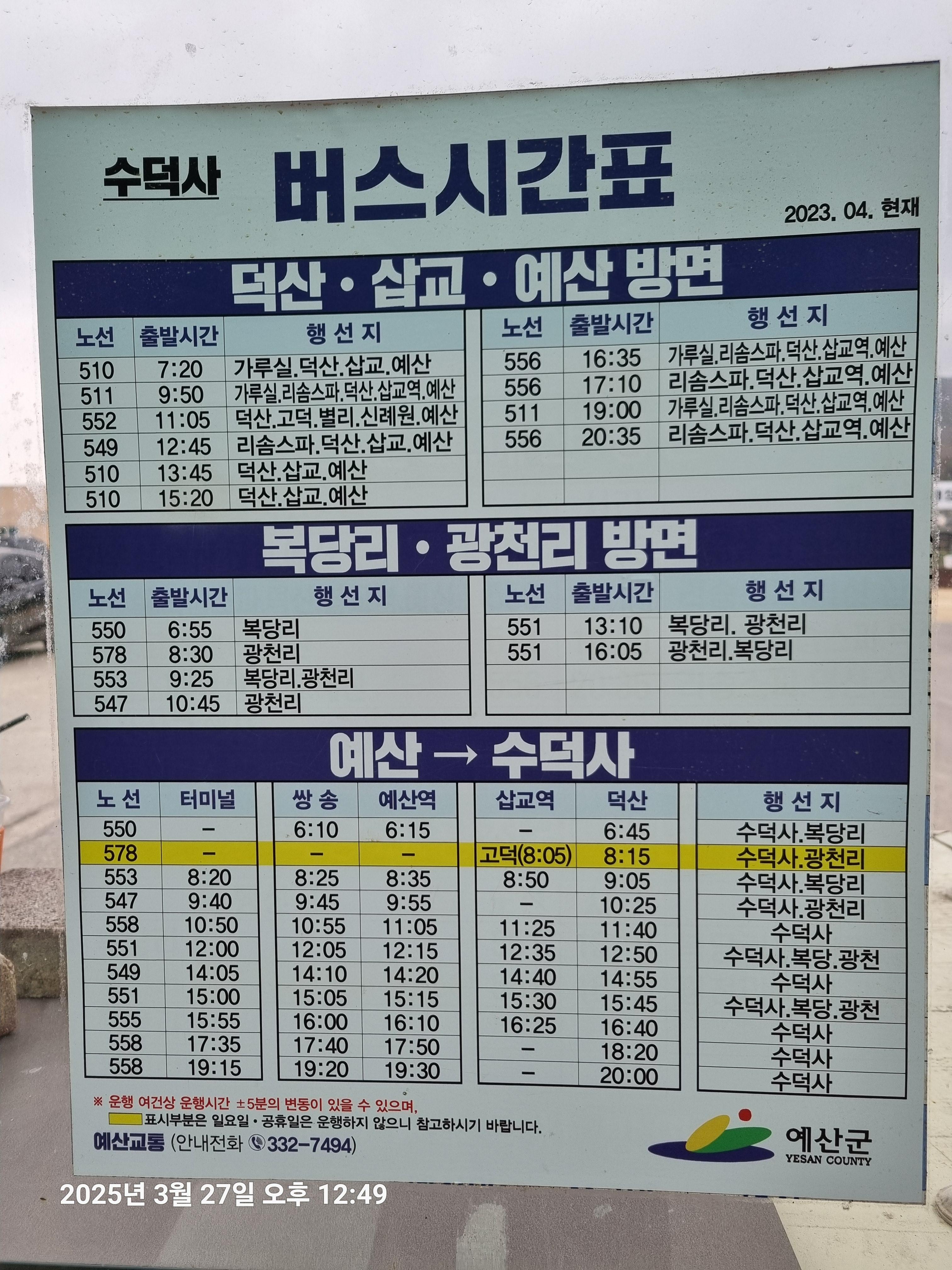 ▼ 양재역에서 07시 20분에 새마포산악회버스에 승차하여 '충남 예산군 덕산면 사천리 산 63' 수덕저수지 위에 도착하다.