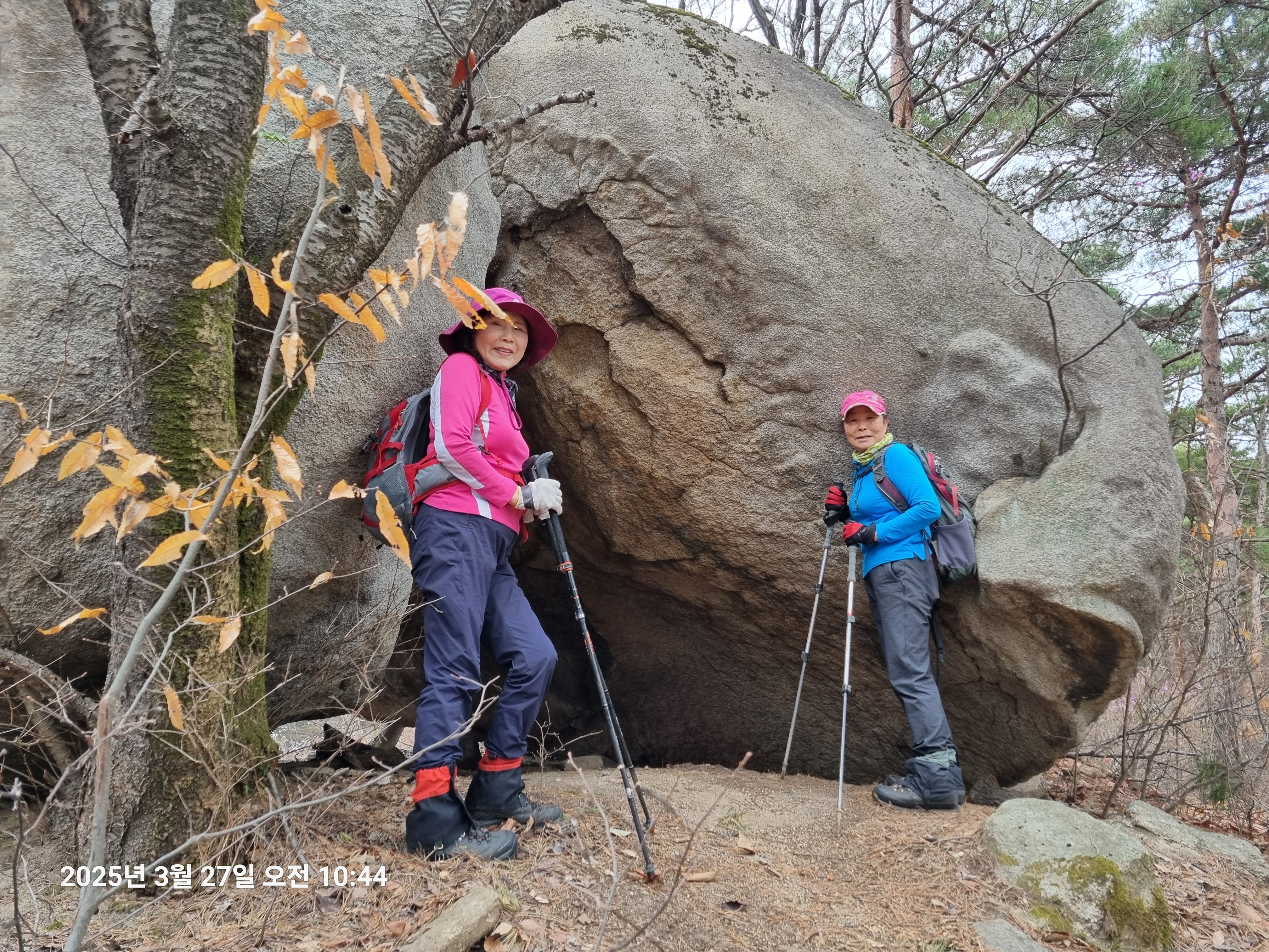 ▼ 굴바위 앞에서 윤인순 님과 노병숙 님 !