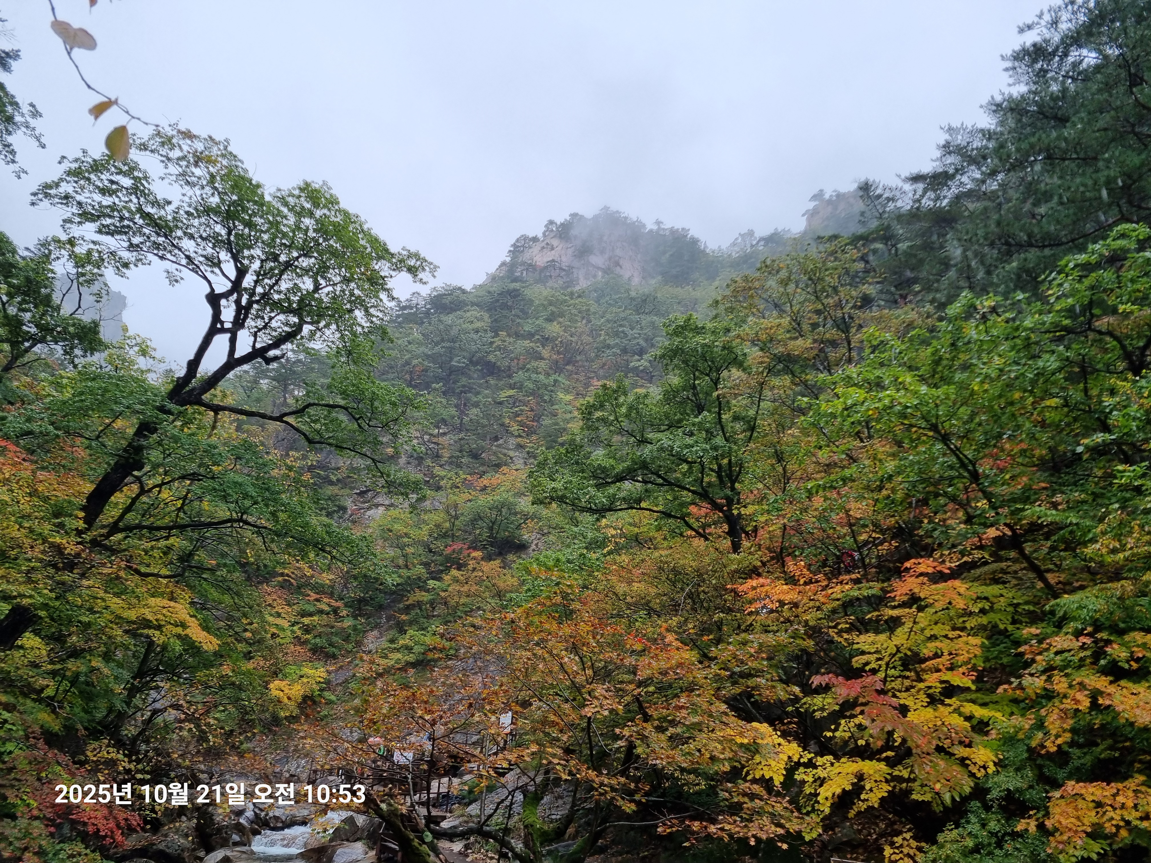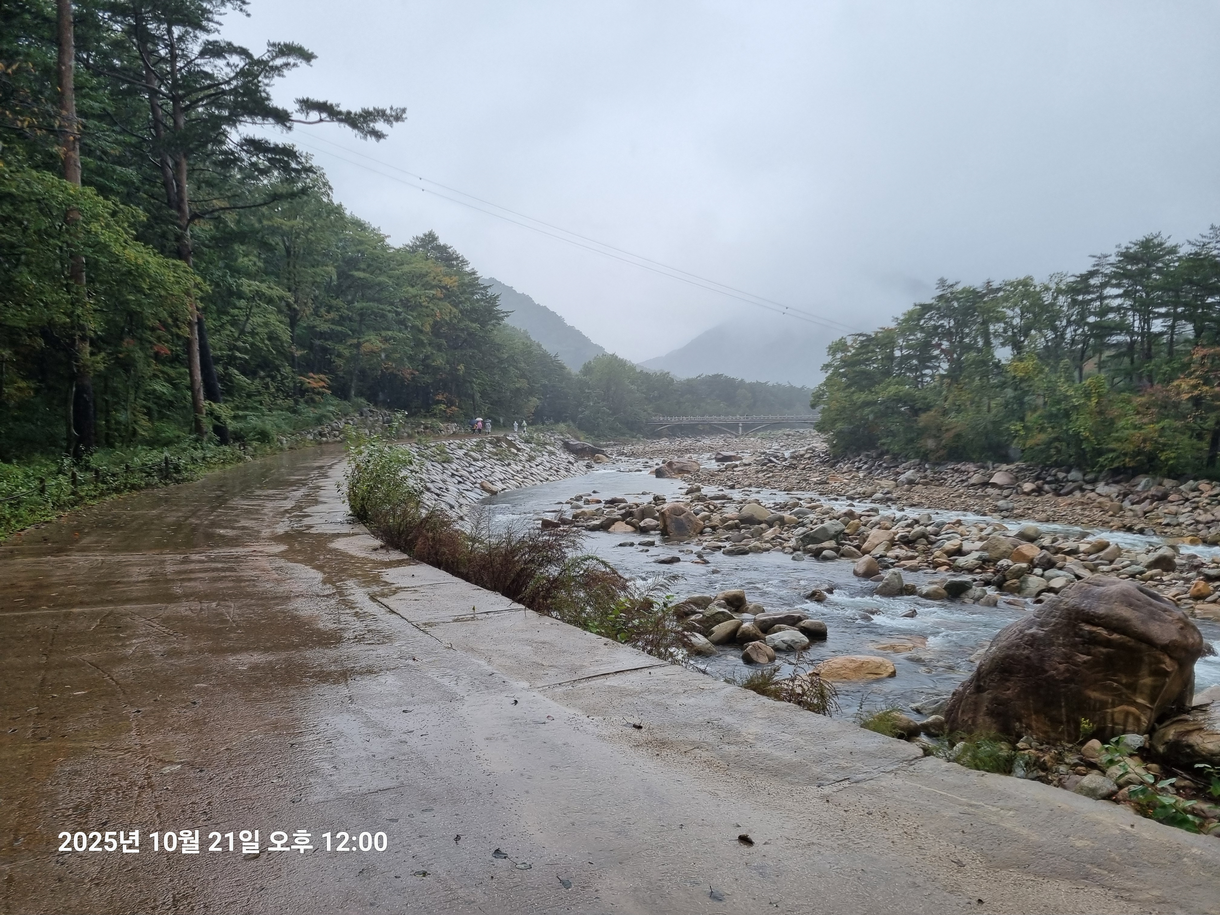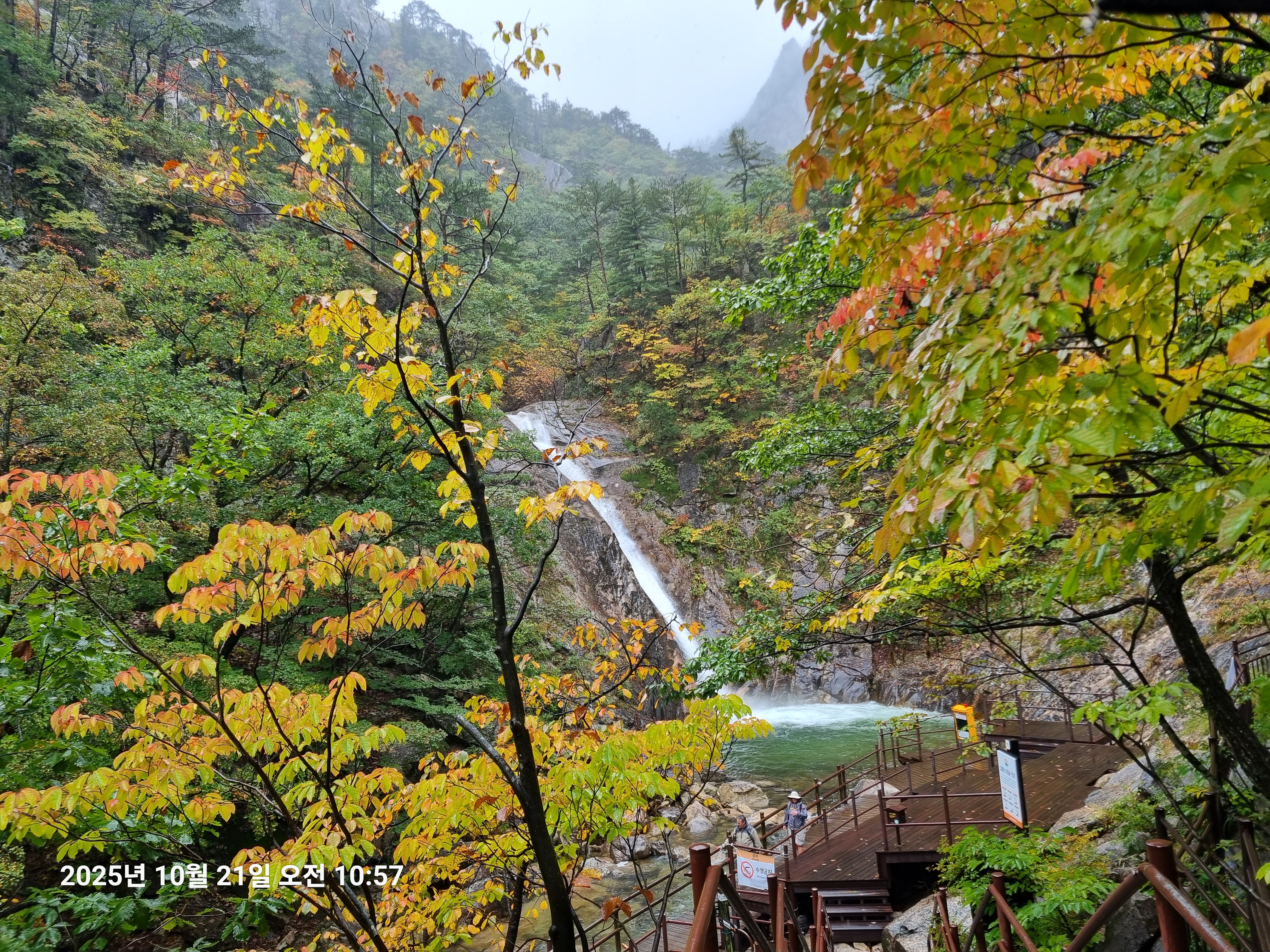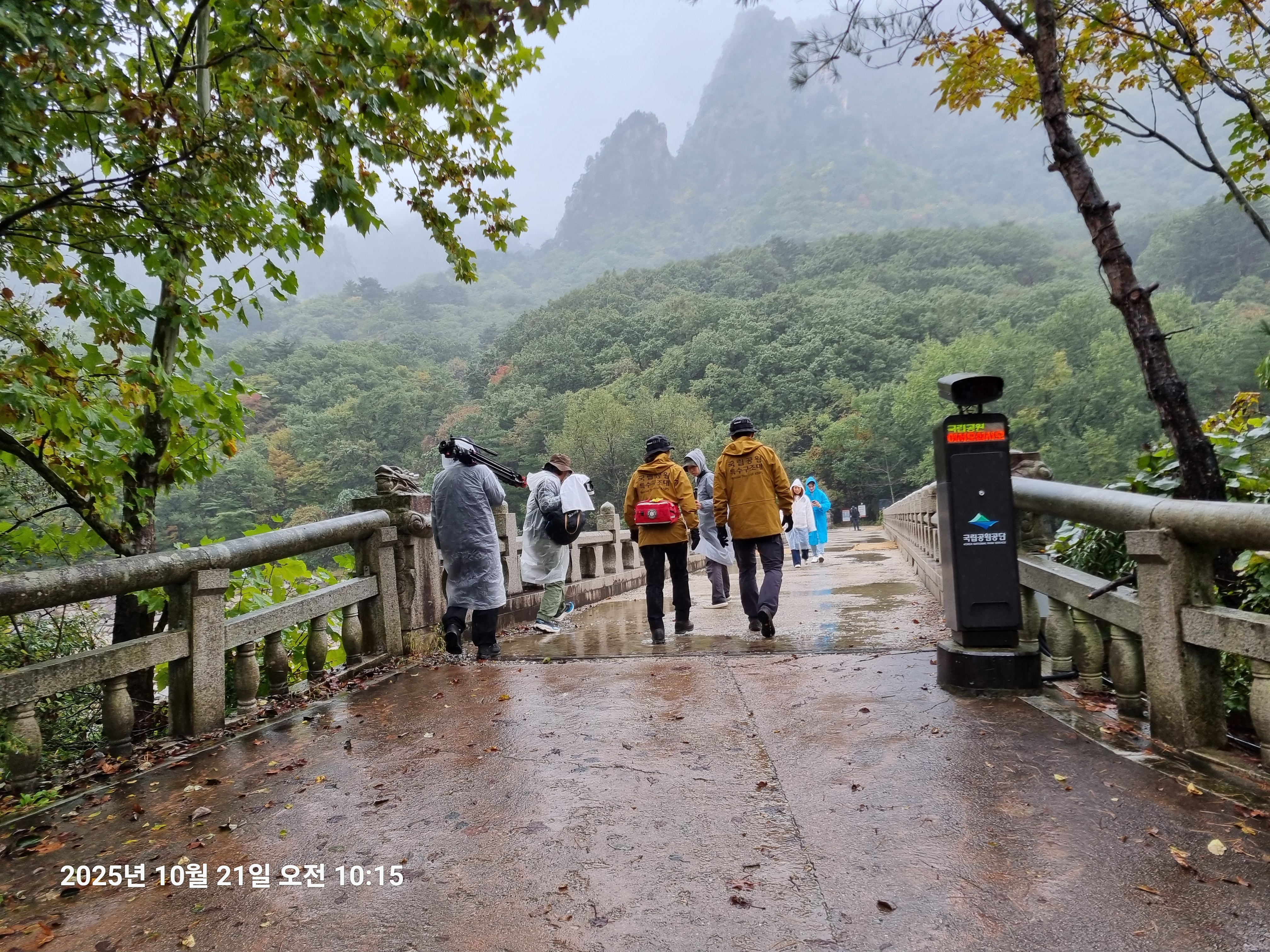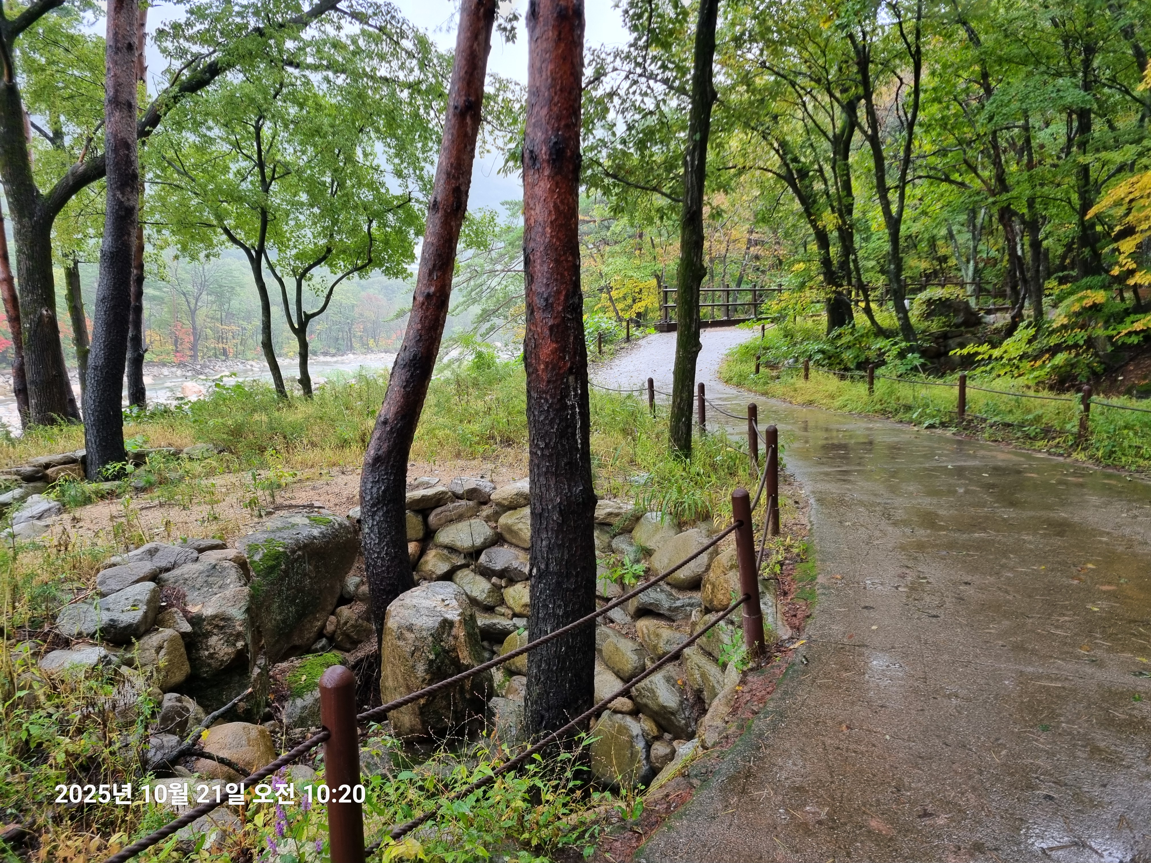 2025년 10월 28일 화요일. 마포산사랑산악회 회원들과 함께 ... 설악동은 비가 내린다. 계속 비가 내려 토왕성폭포 전망대와 울산바위 아래 흔들바위 계조암까지 산책하고 돌아왔다.