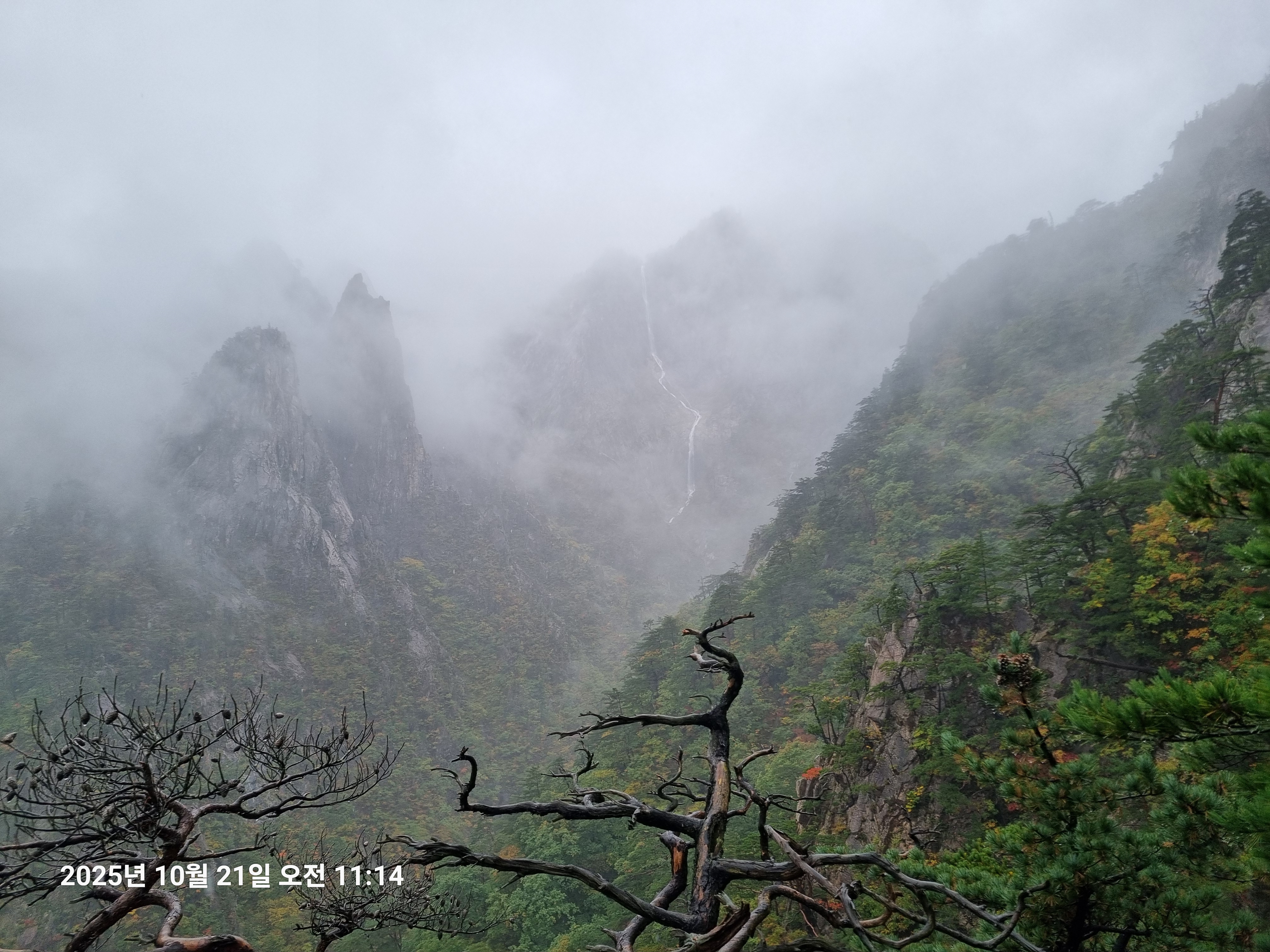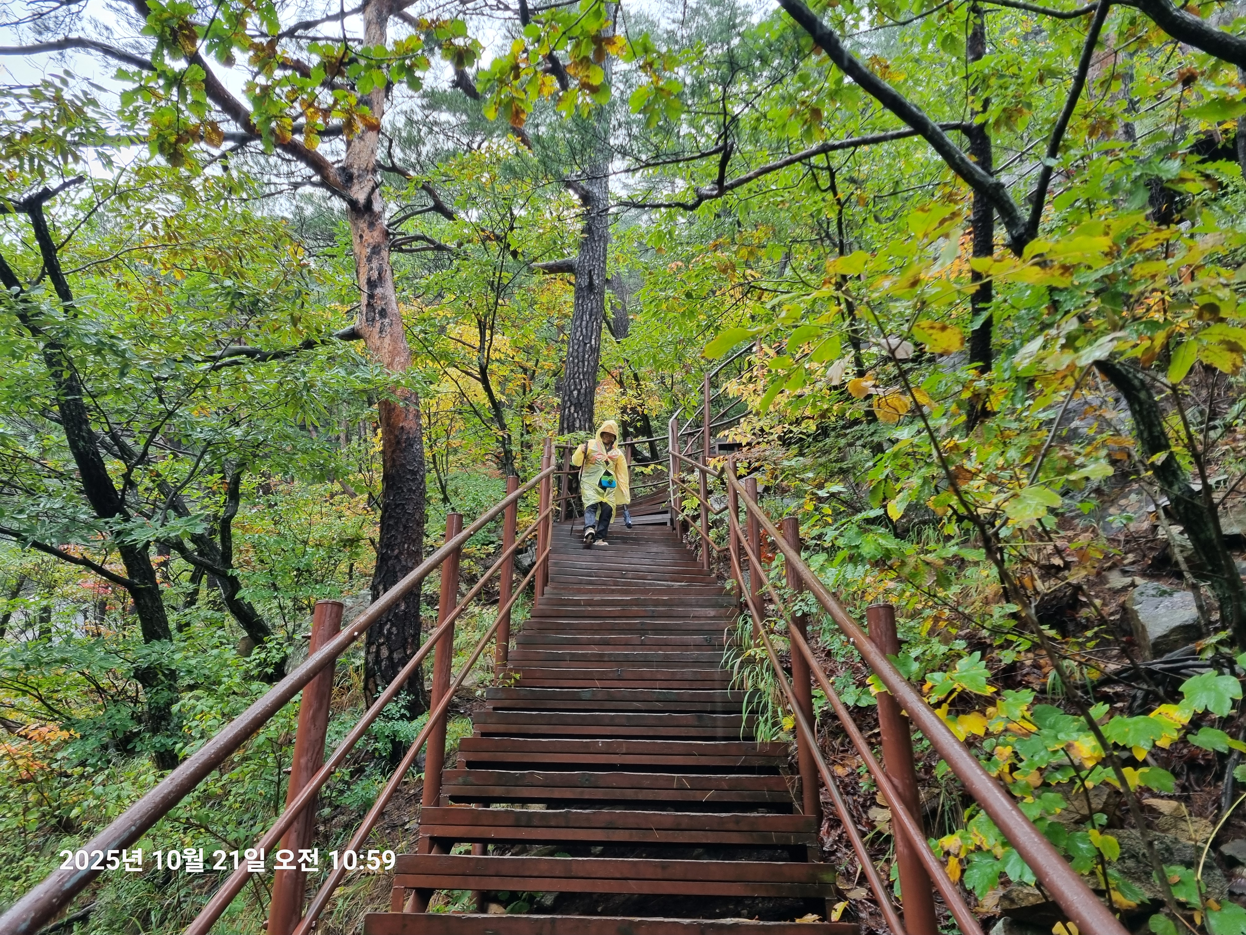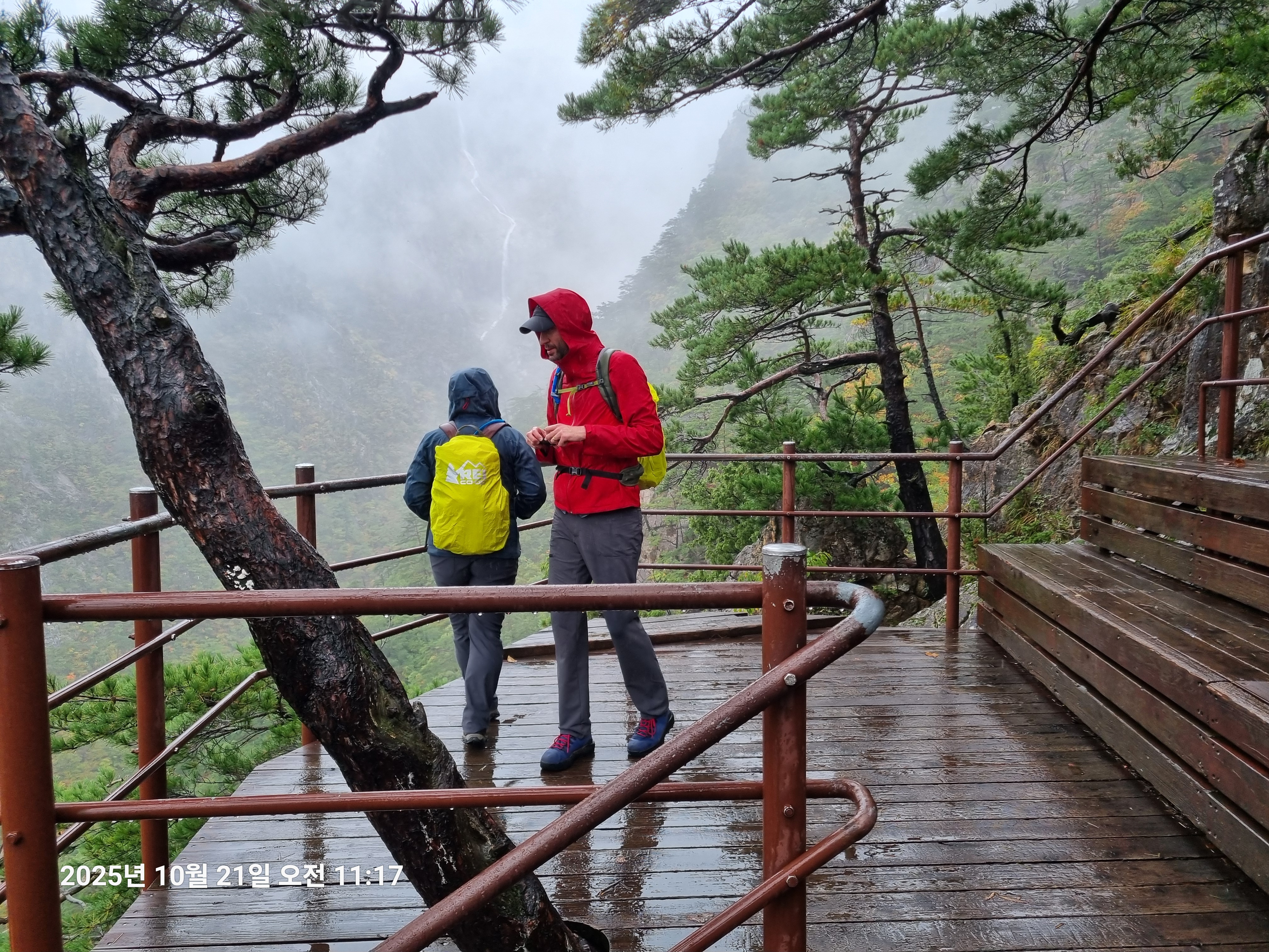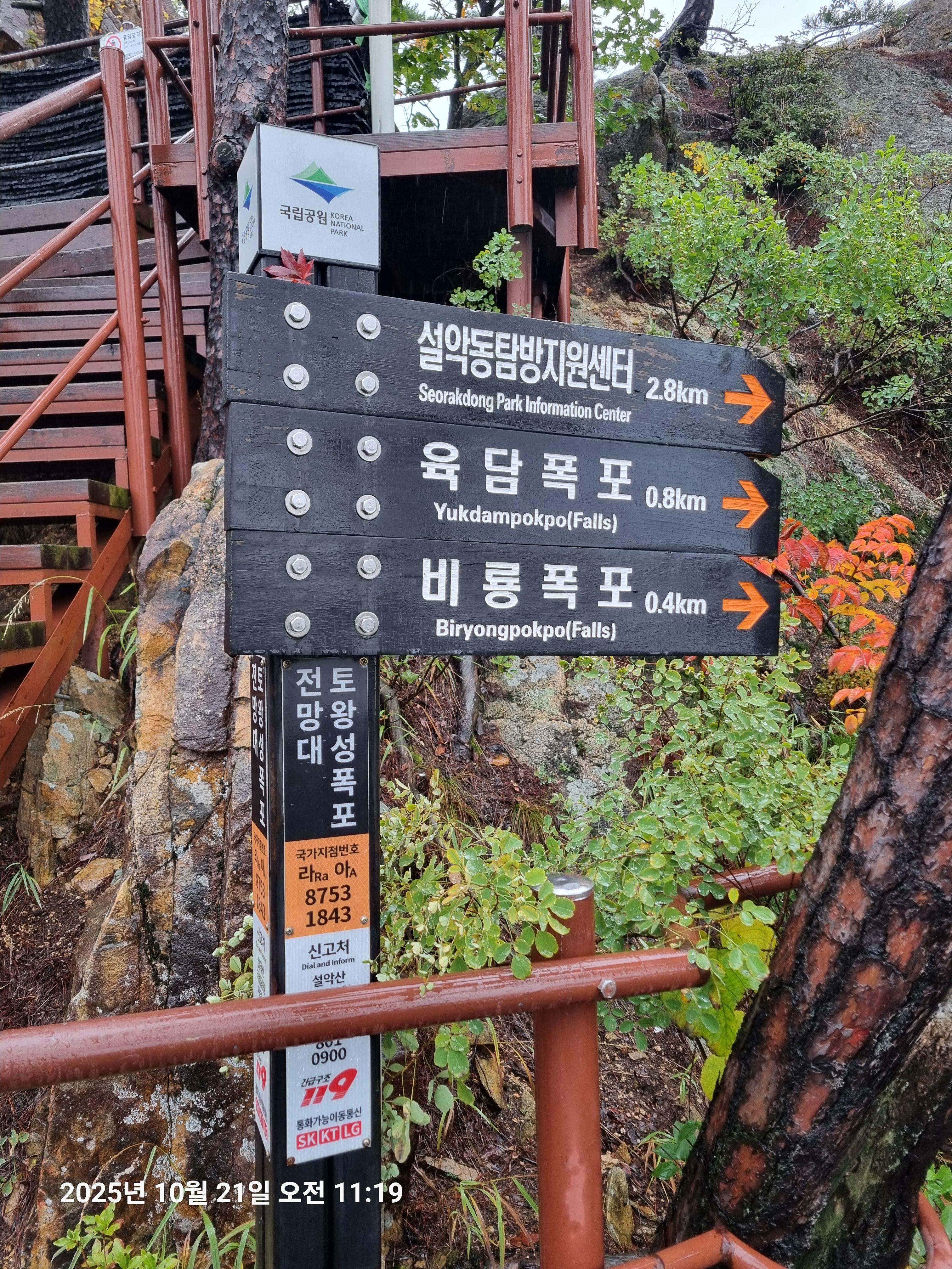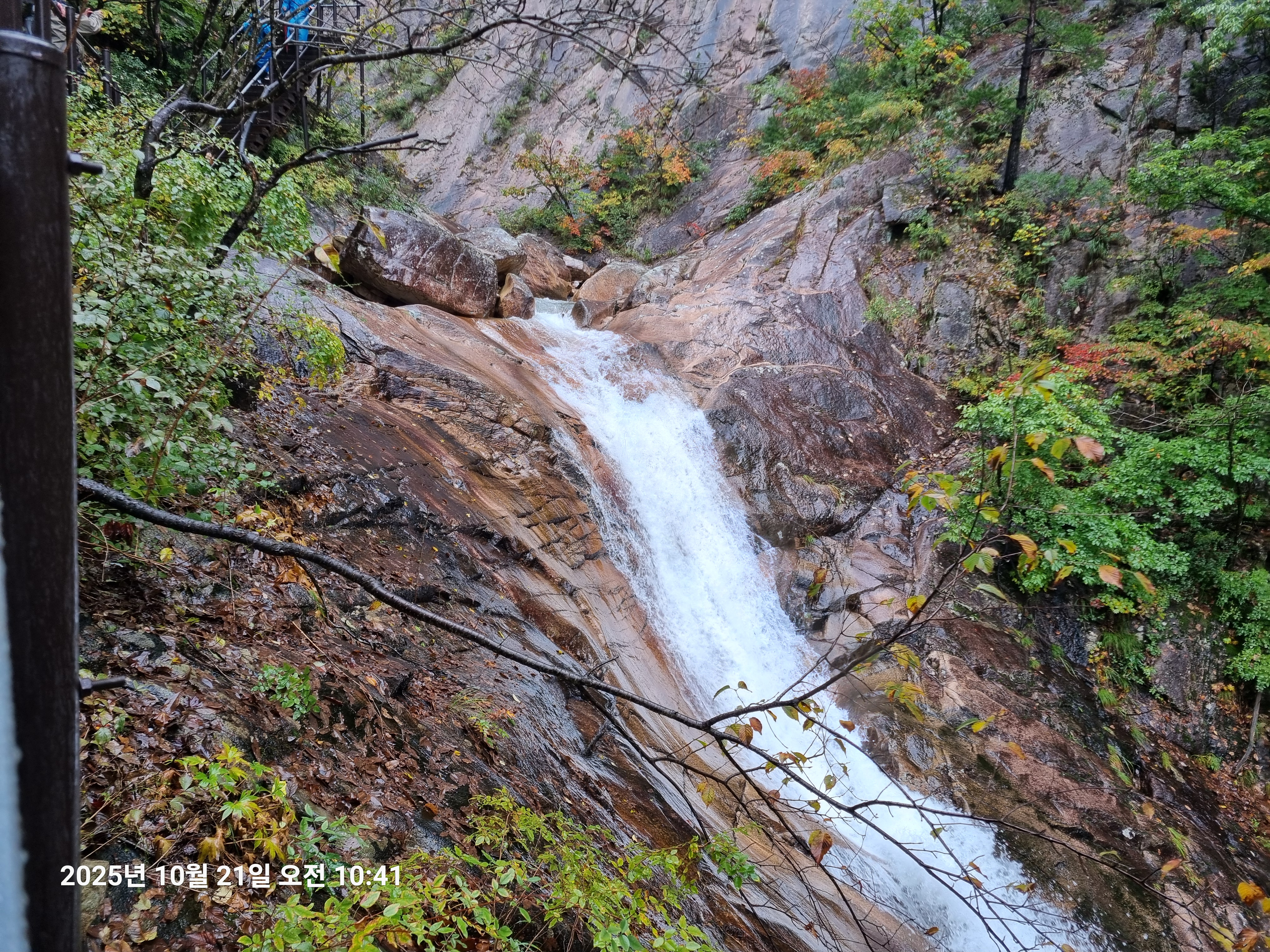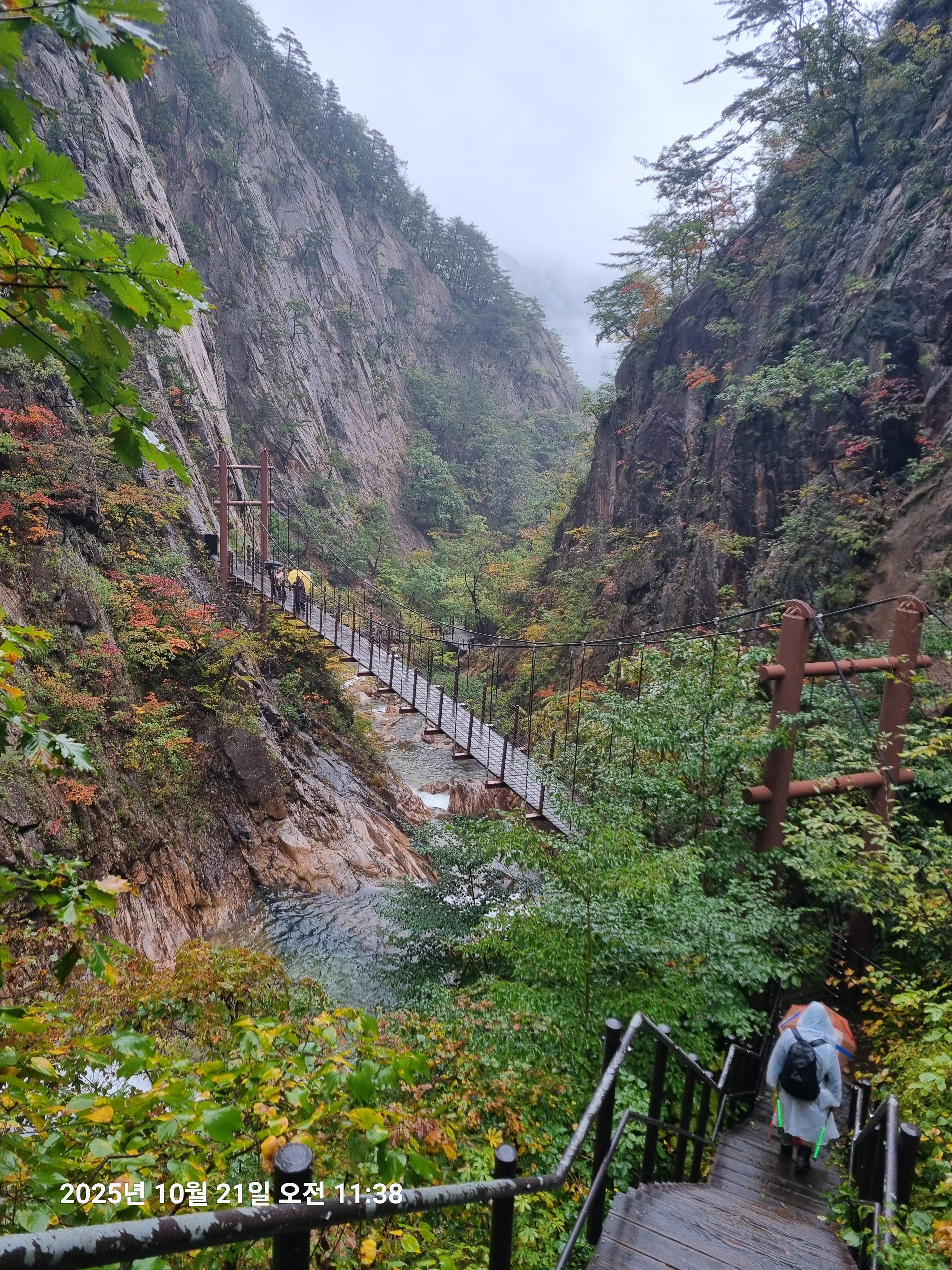 2025년 10월 28일 화요일. 마포산사랑산악회 회원들과 함께 ... 설악동은 비가 내린다. 계속 비가 내려 토왕성폭포 전망대와 울산바위 아래 흔들바위 계조암까지 산책하고 돌아왔다.
