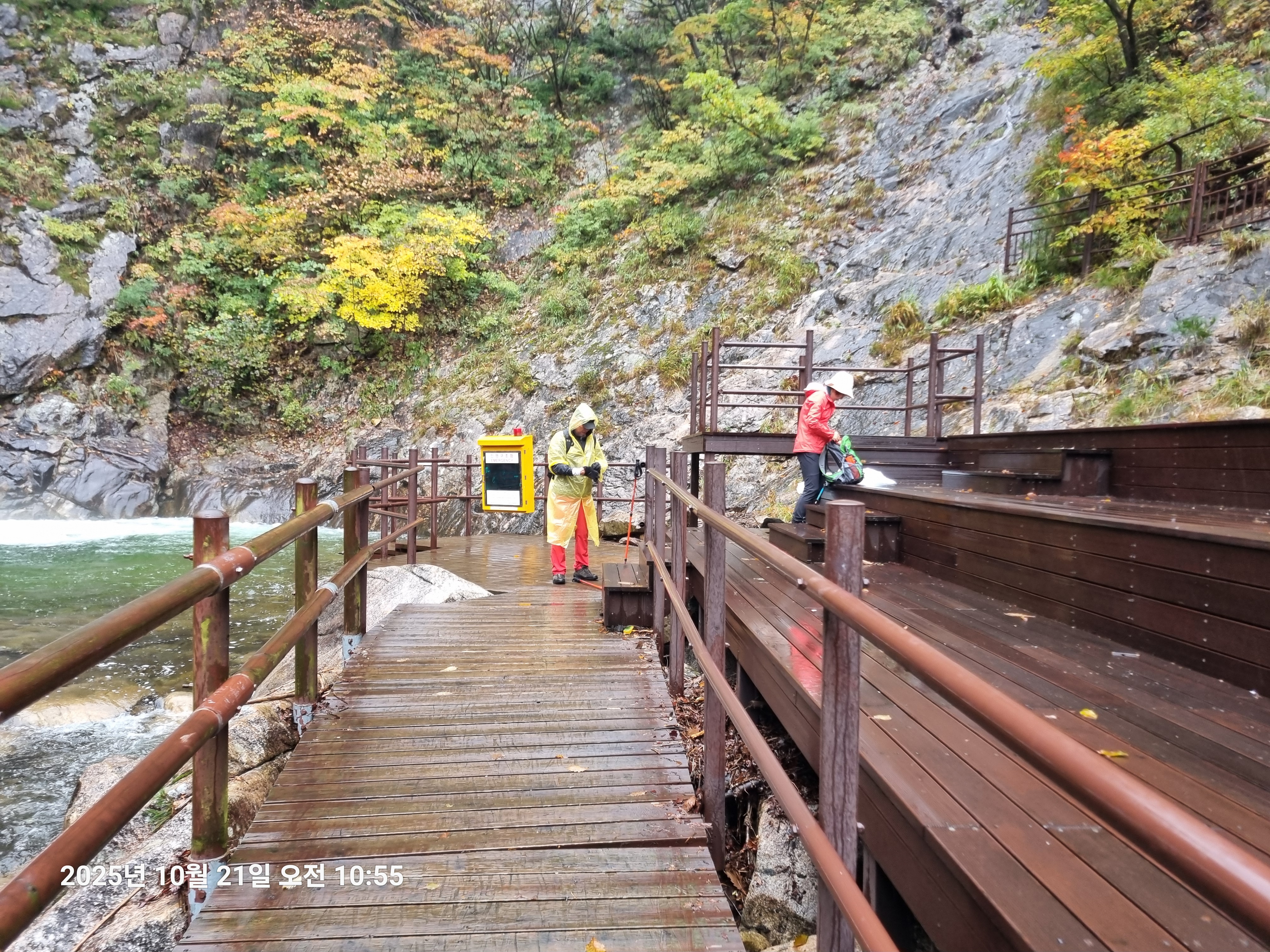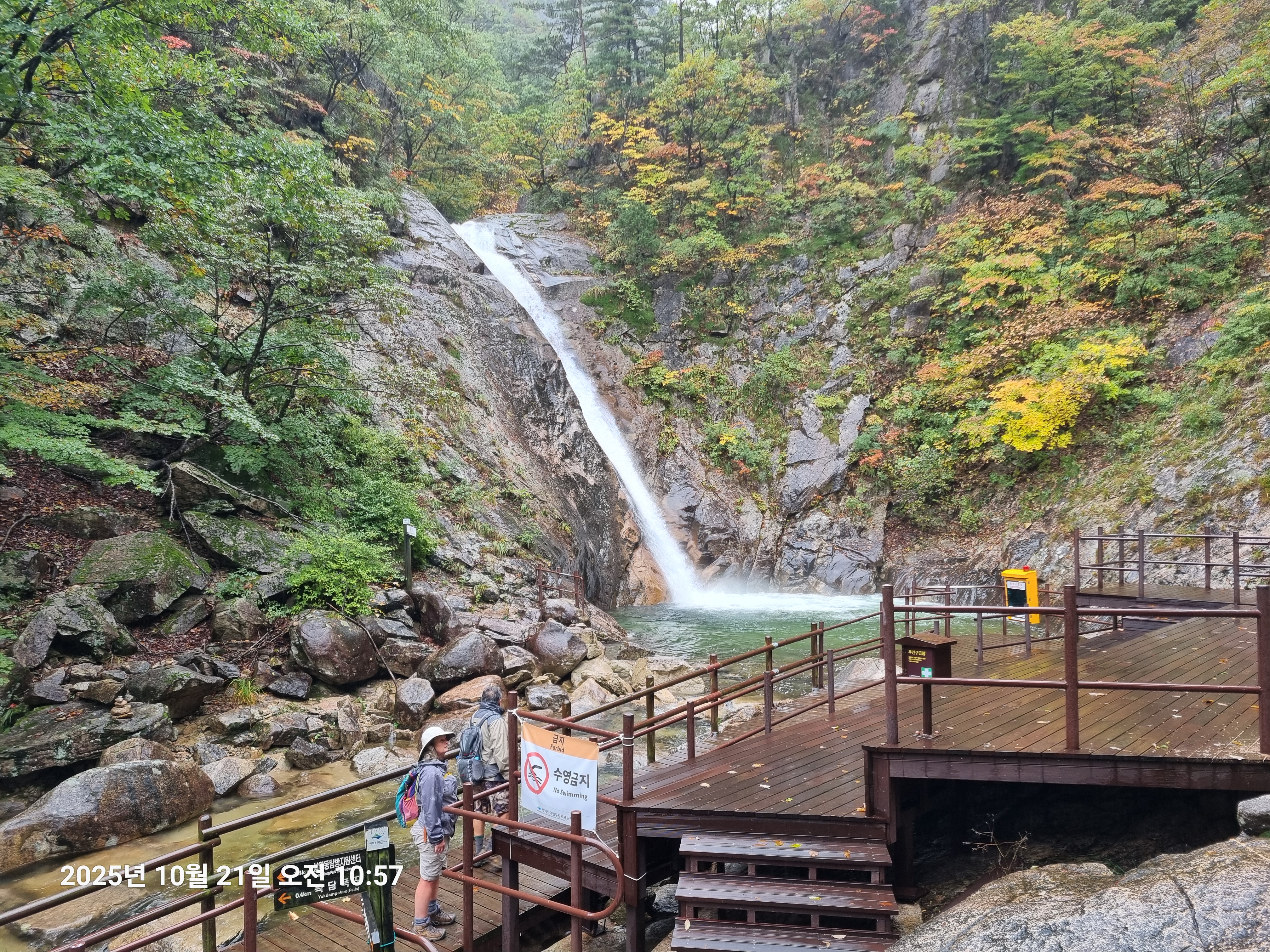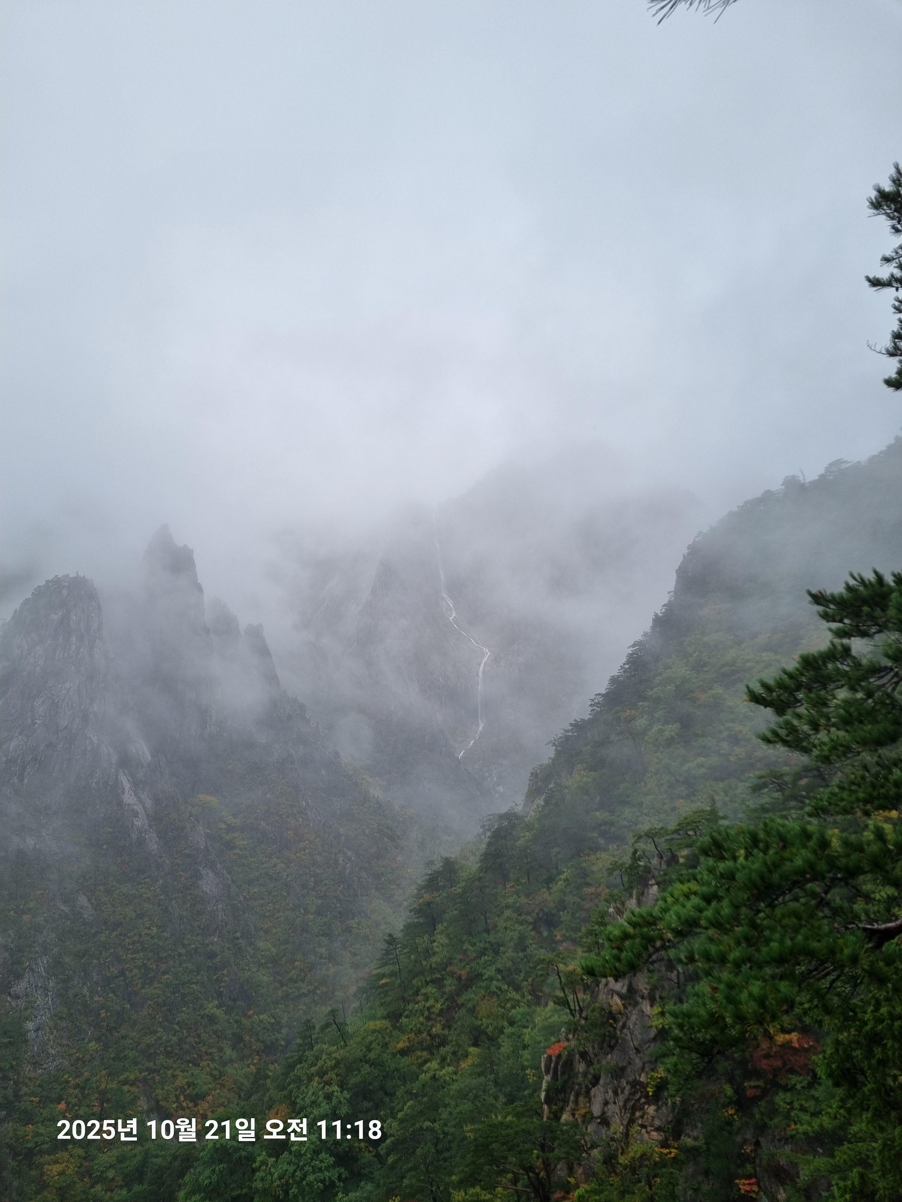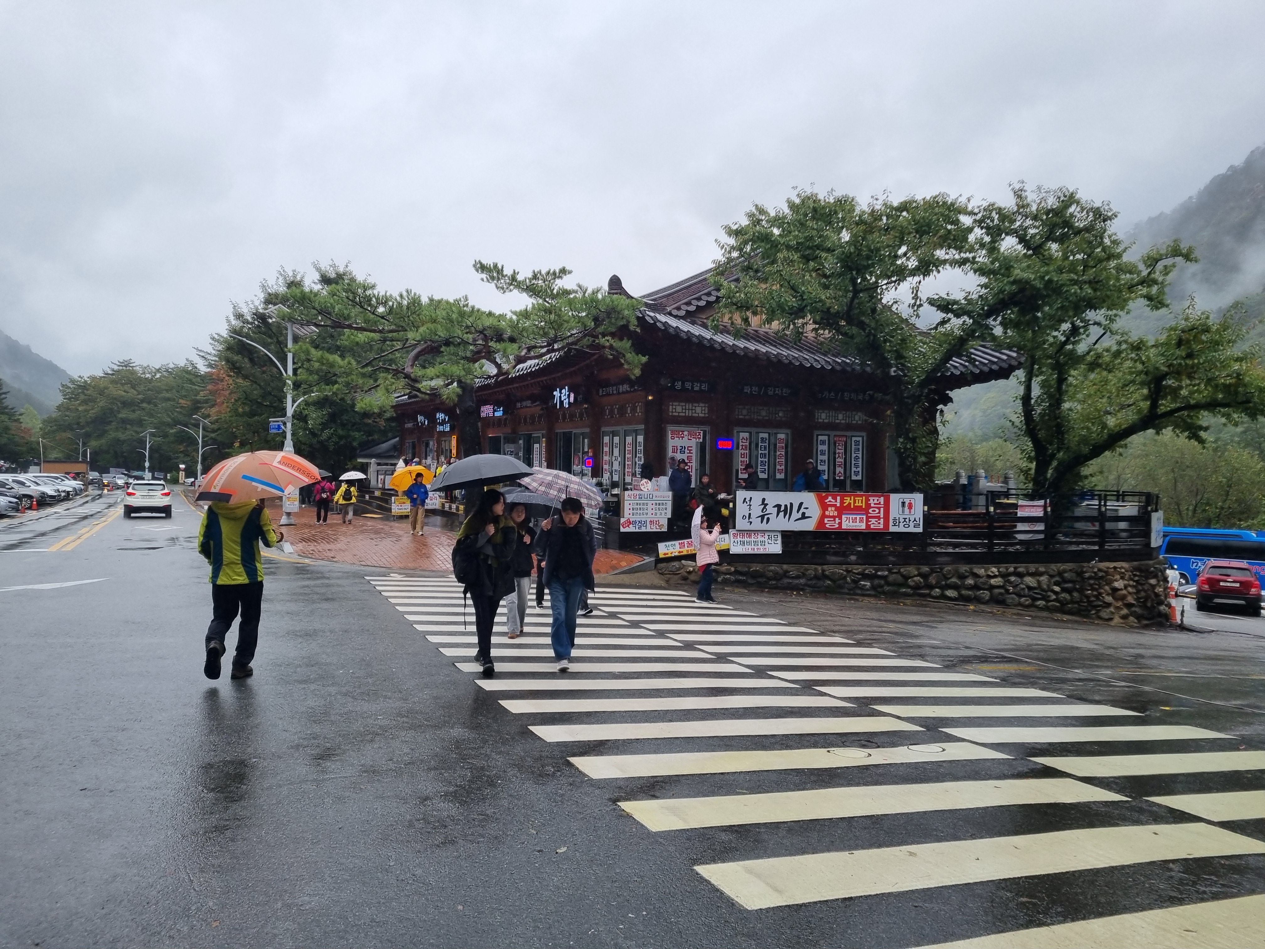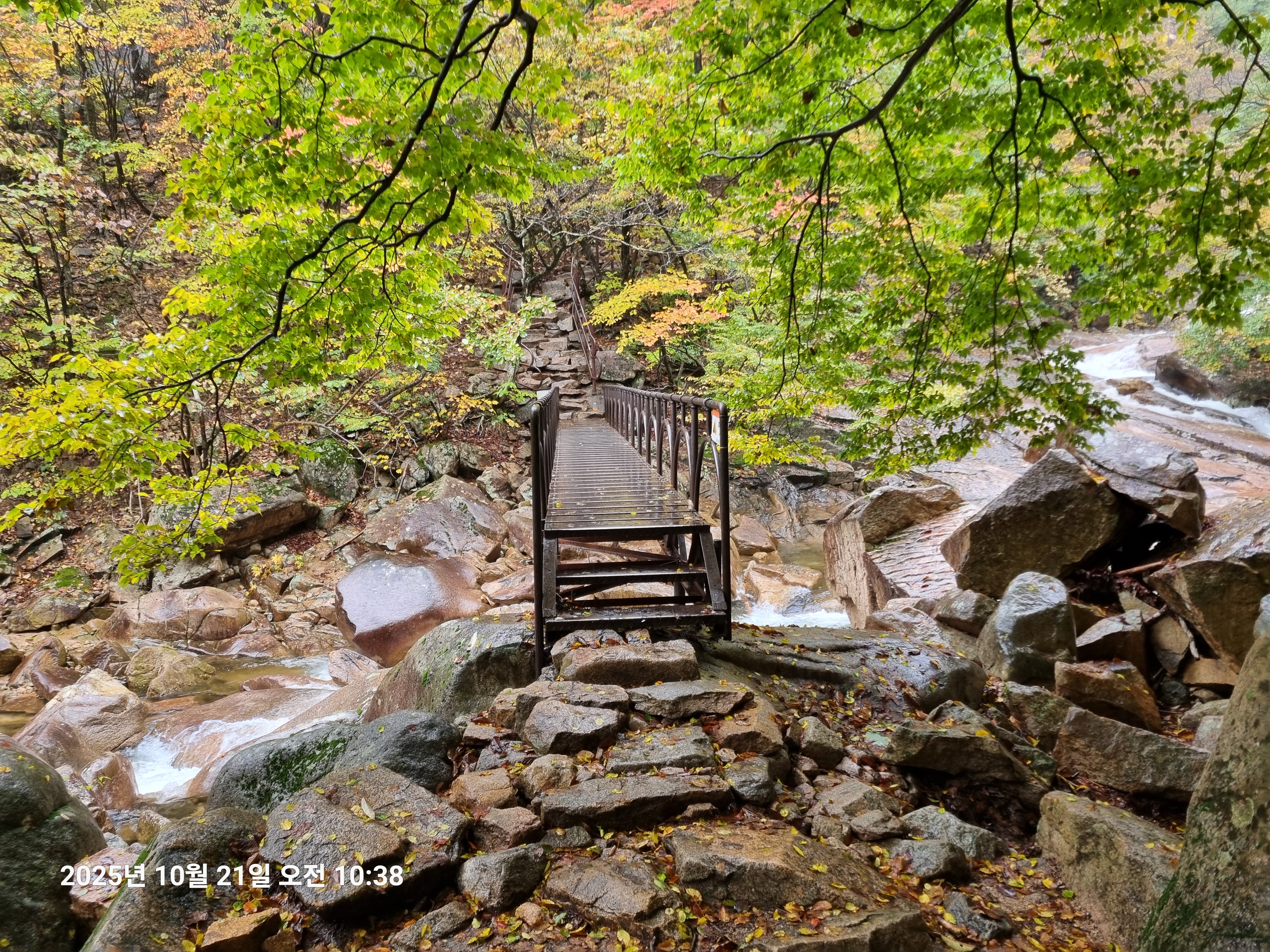 2025년 10월 28일 화요일. 마포산사랑산악회 회원들과 함께 ... 설악동은 비가 내린다. 계속 비가 내려 토왕성폭포 전망대와 울산바위 아래 흔들바위 계조암까지 산책하고 돌아왔다.
