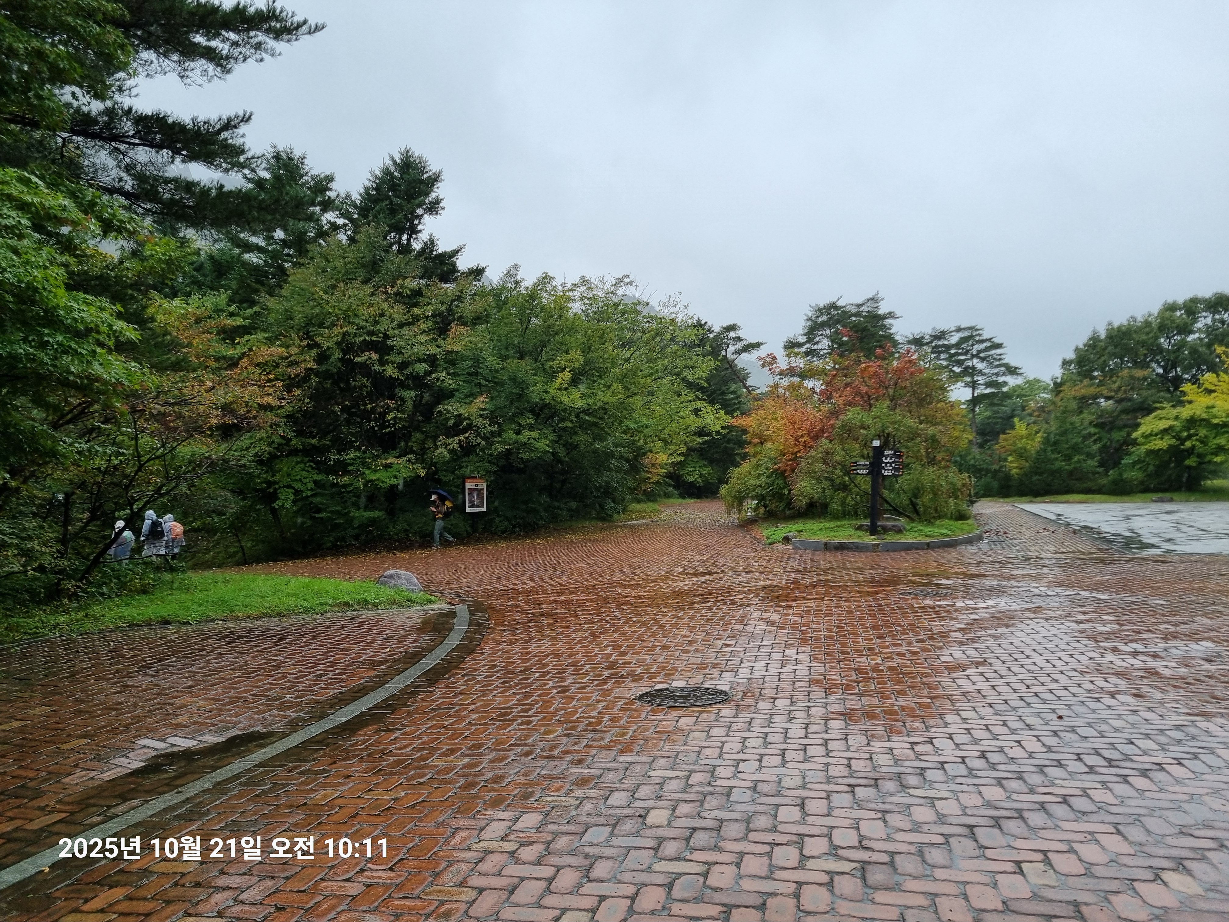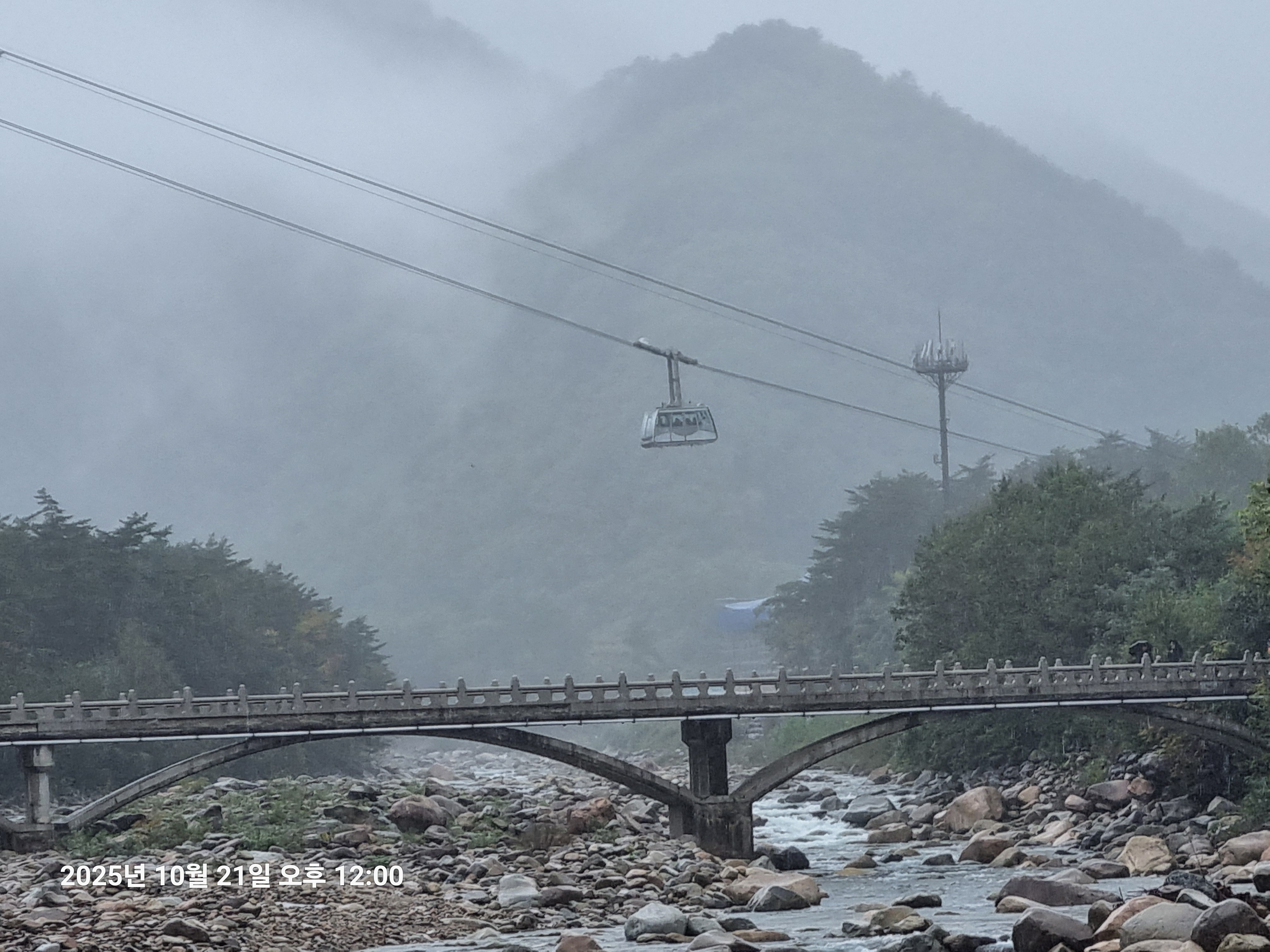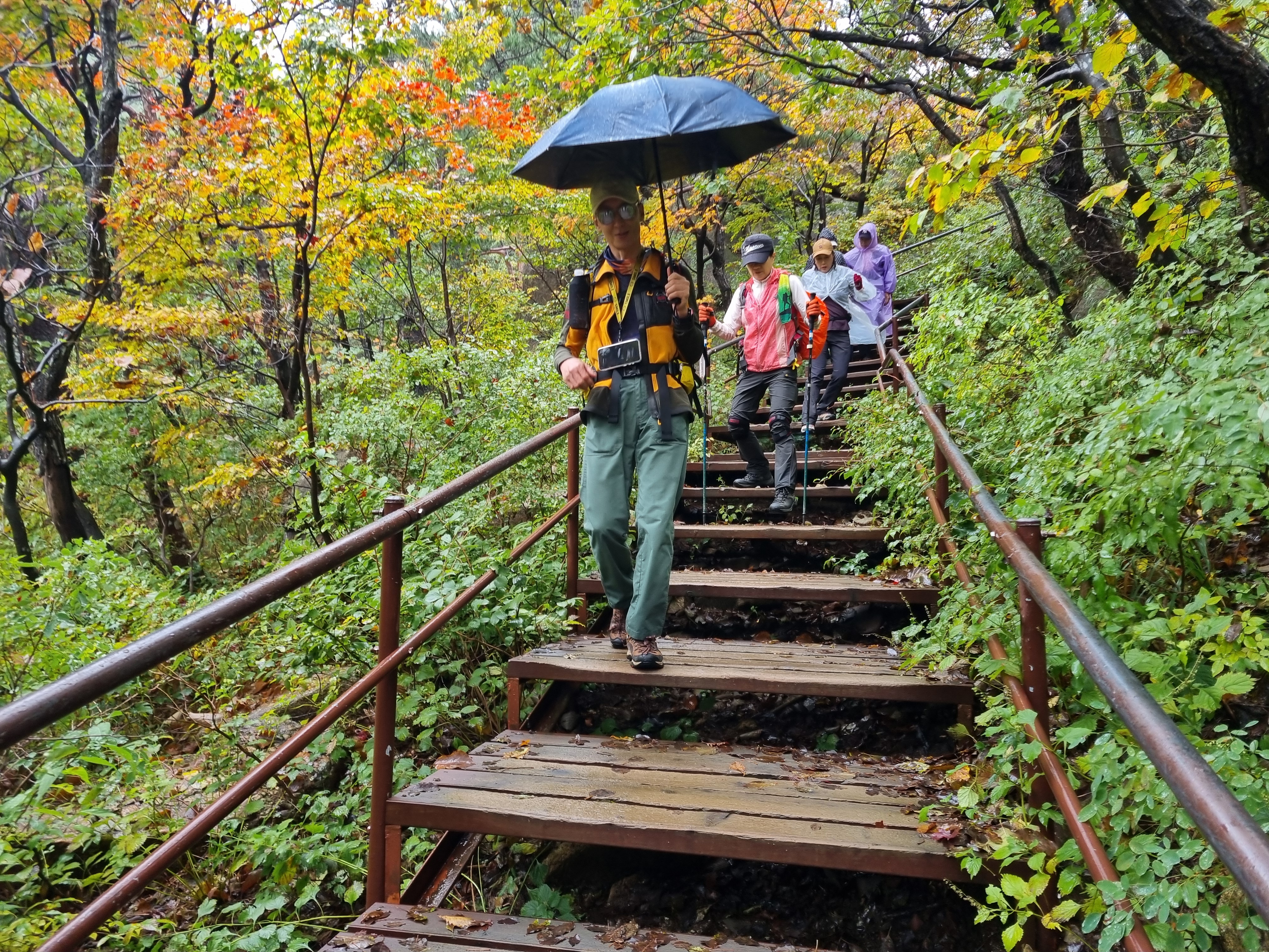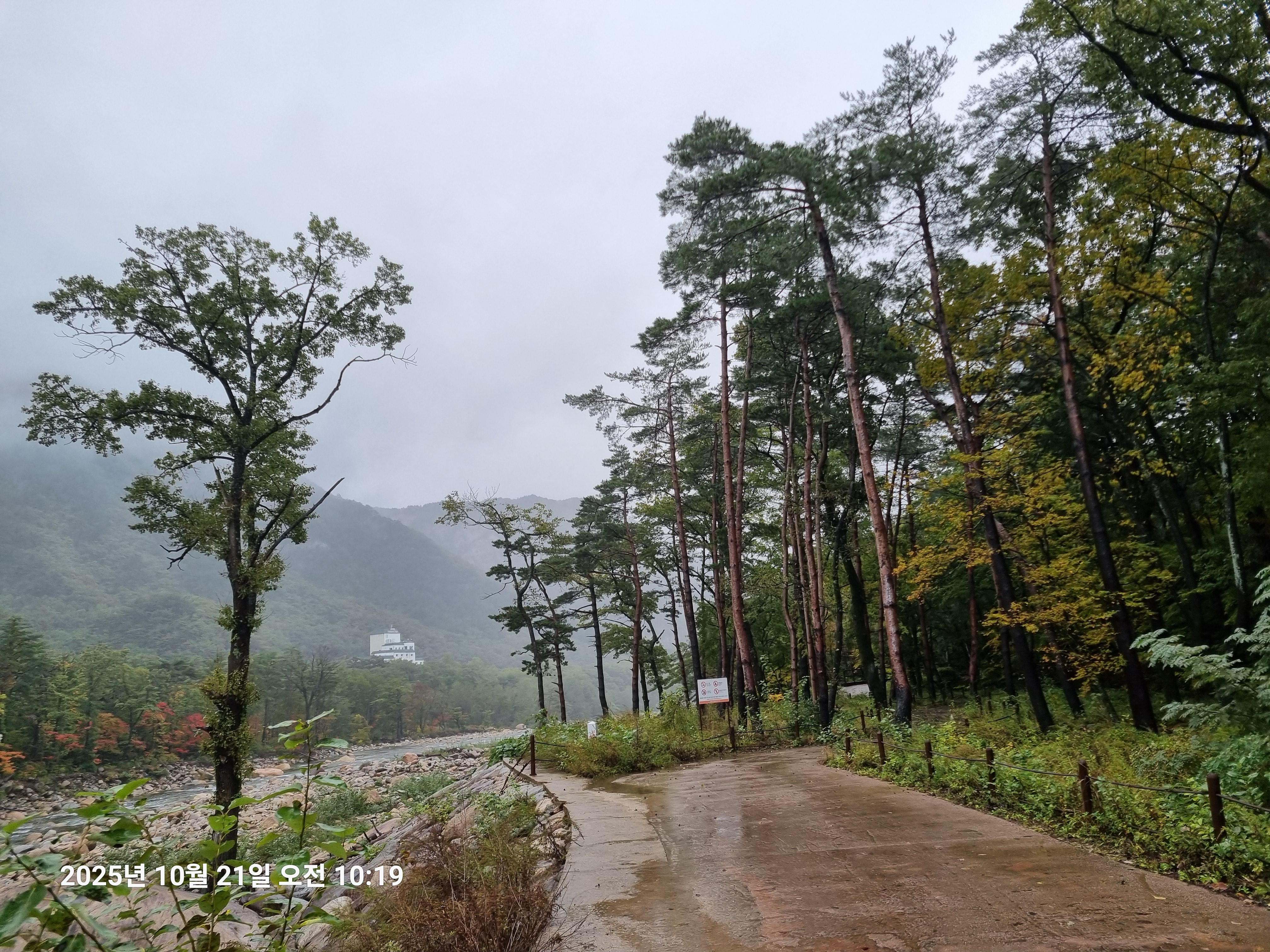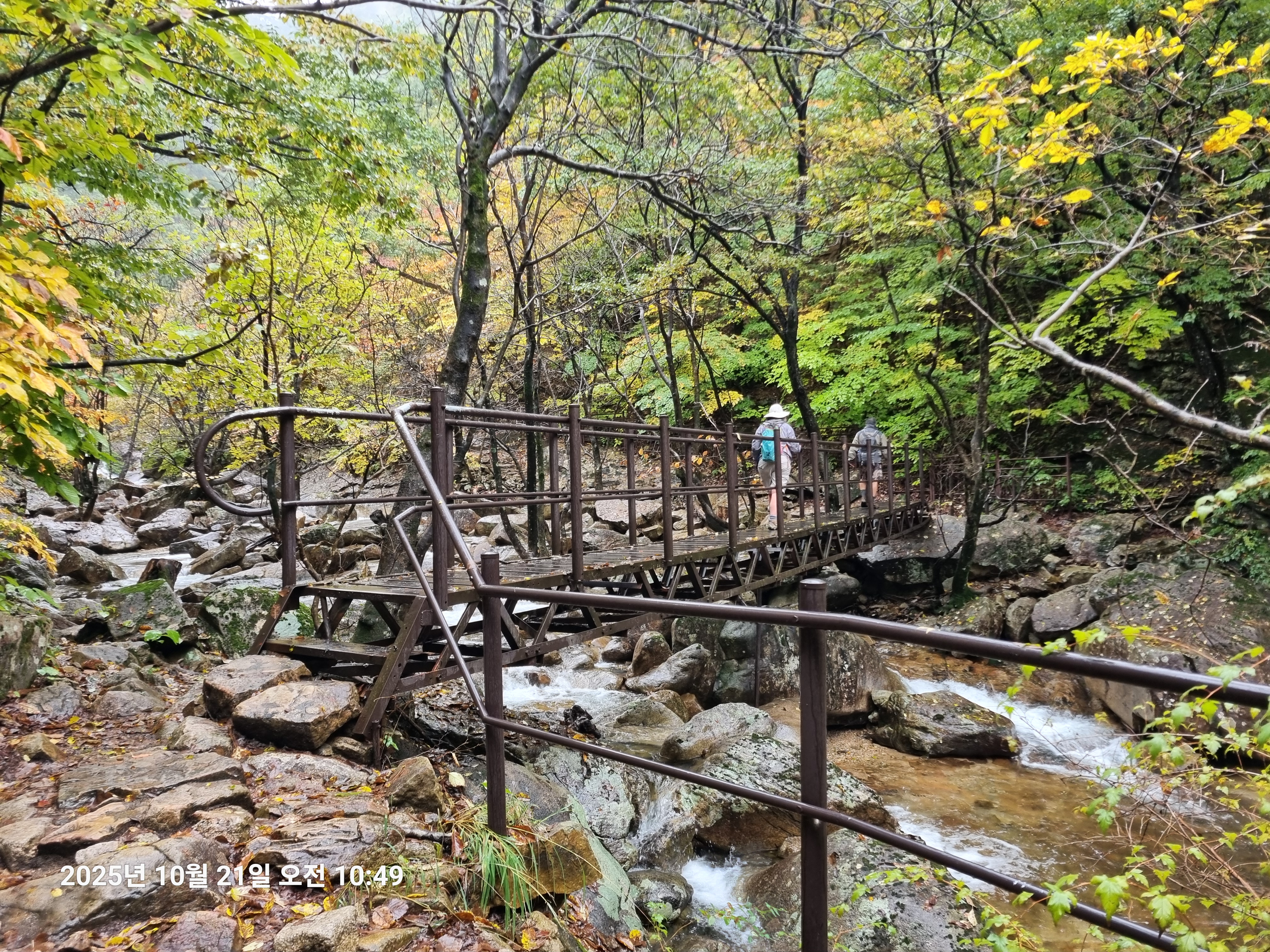 2025년 10월 28일 화요일. 마포산사랑산악회 회원들과 함께 ... 설악동은 비가 내린다. 계속 비가 내려 토왕성폭포 전망대와 울산바위 아래 흔들바위 계조암까지 산책하고 돌아왔다.