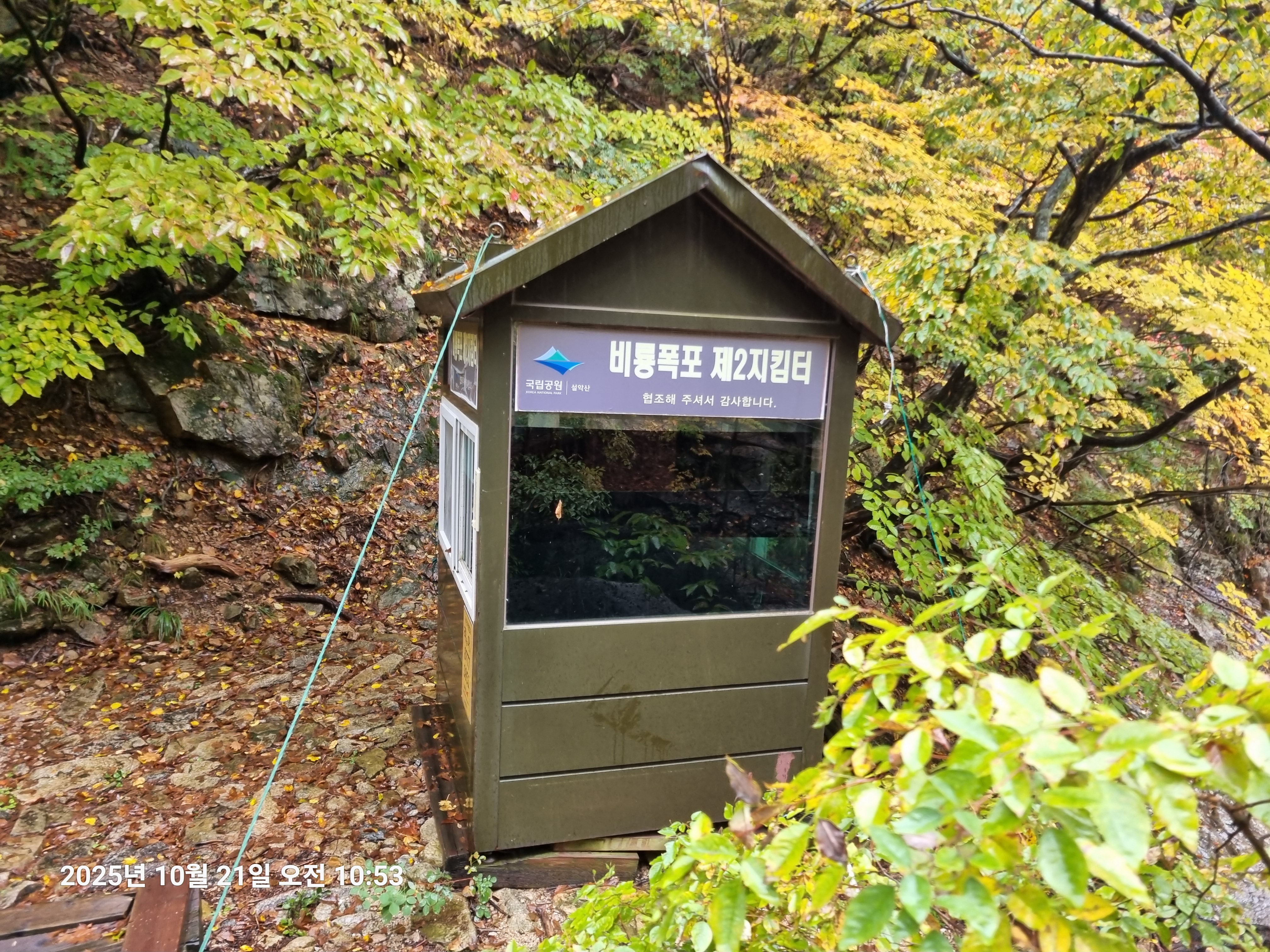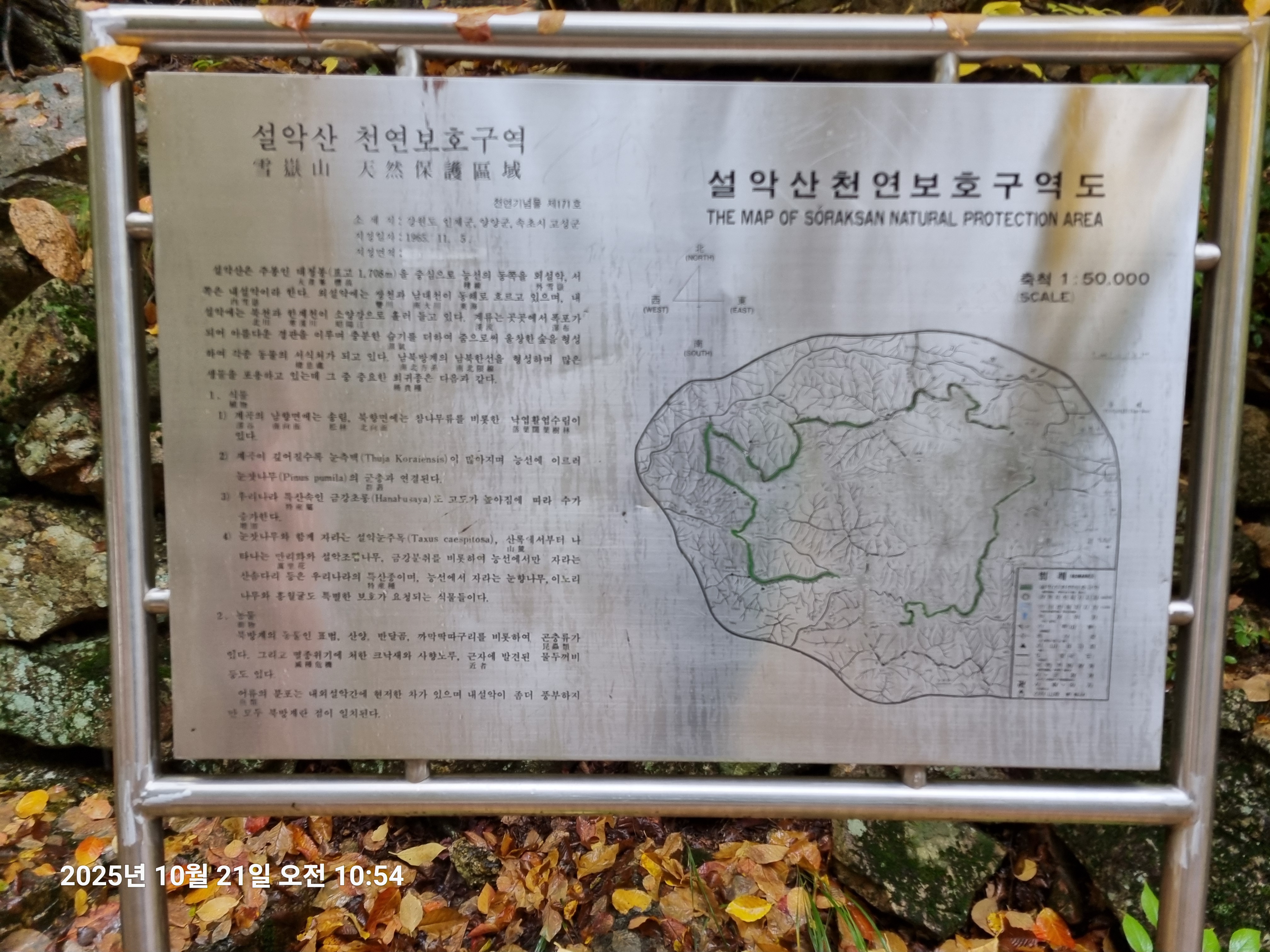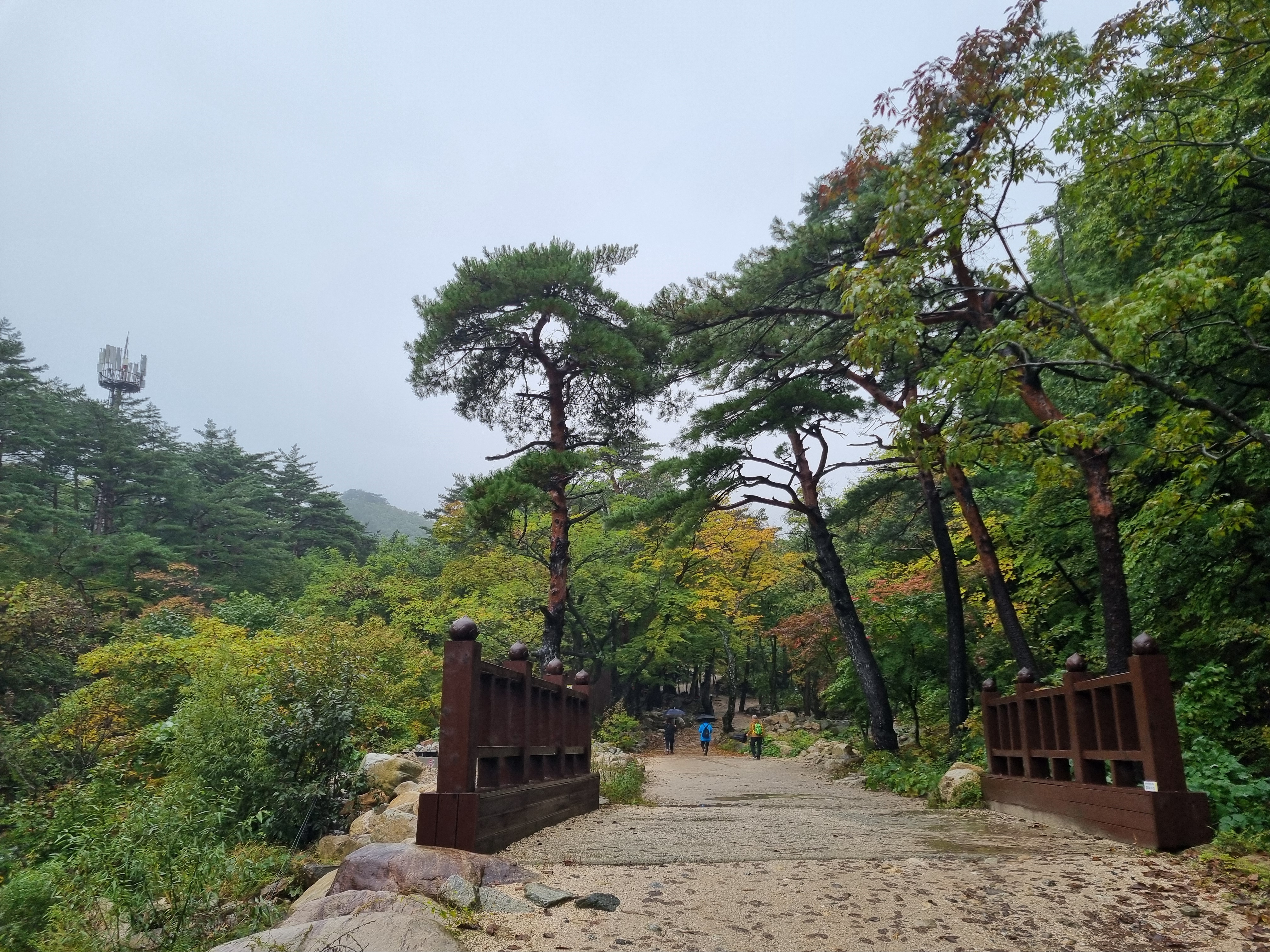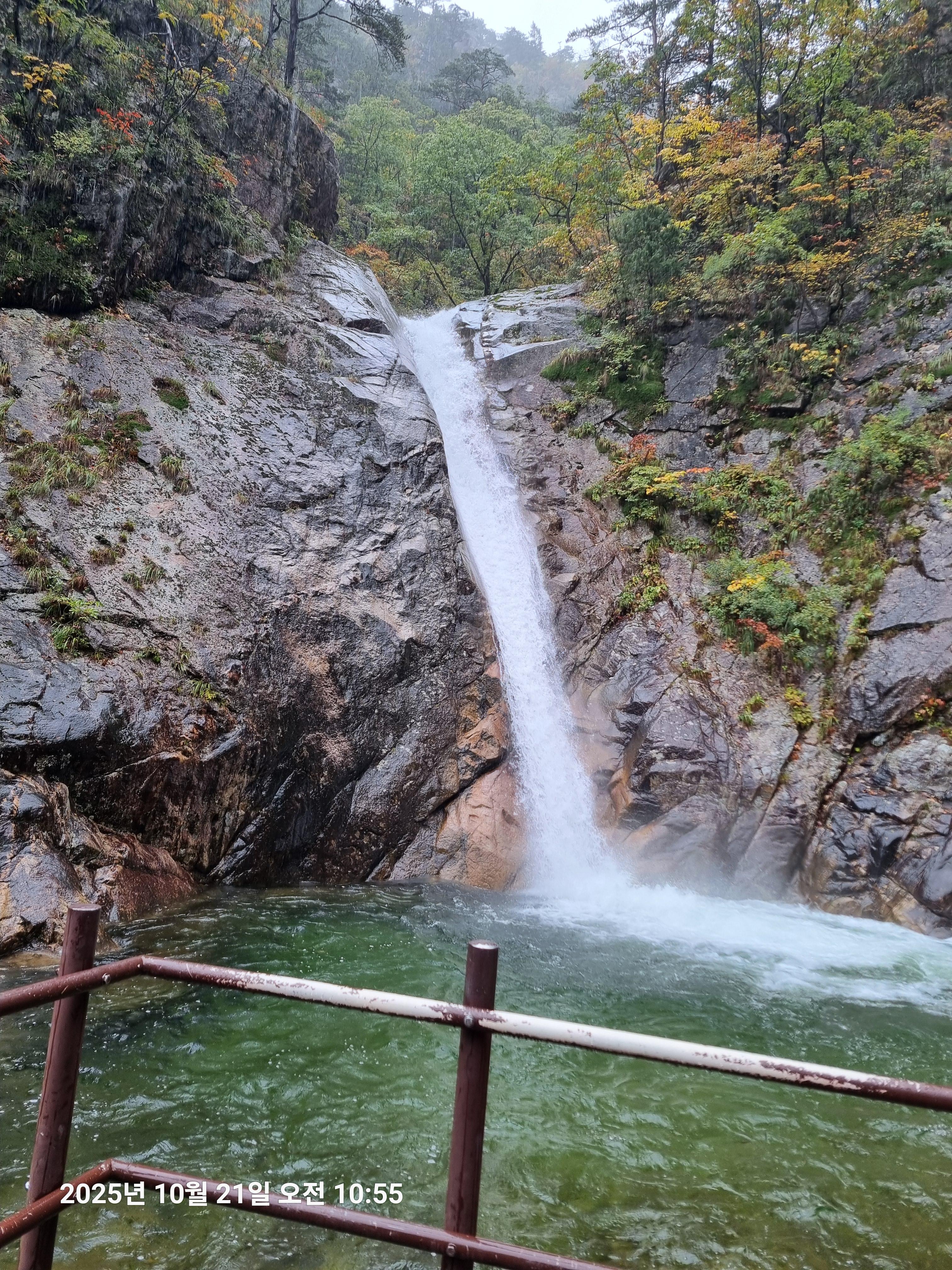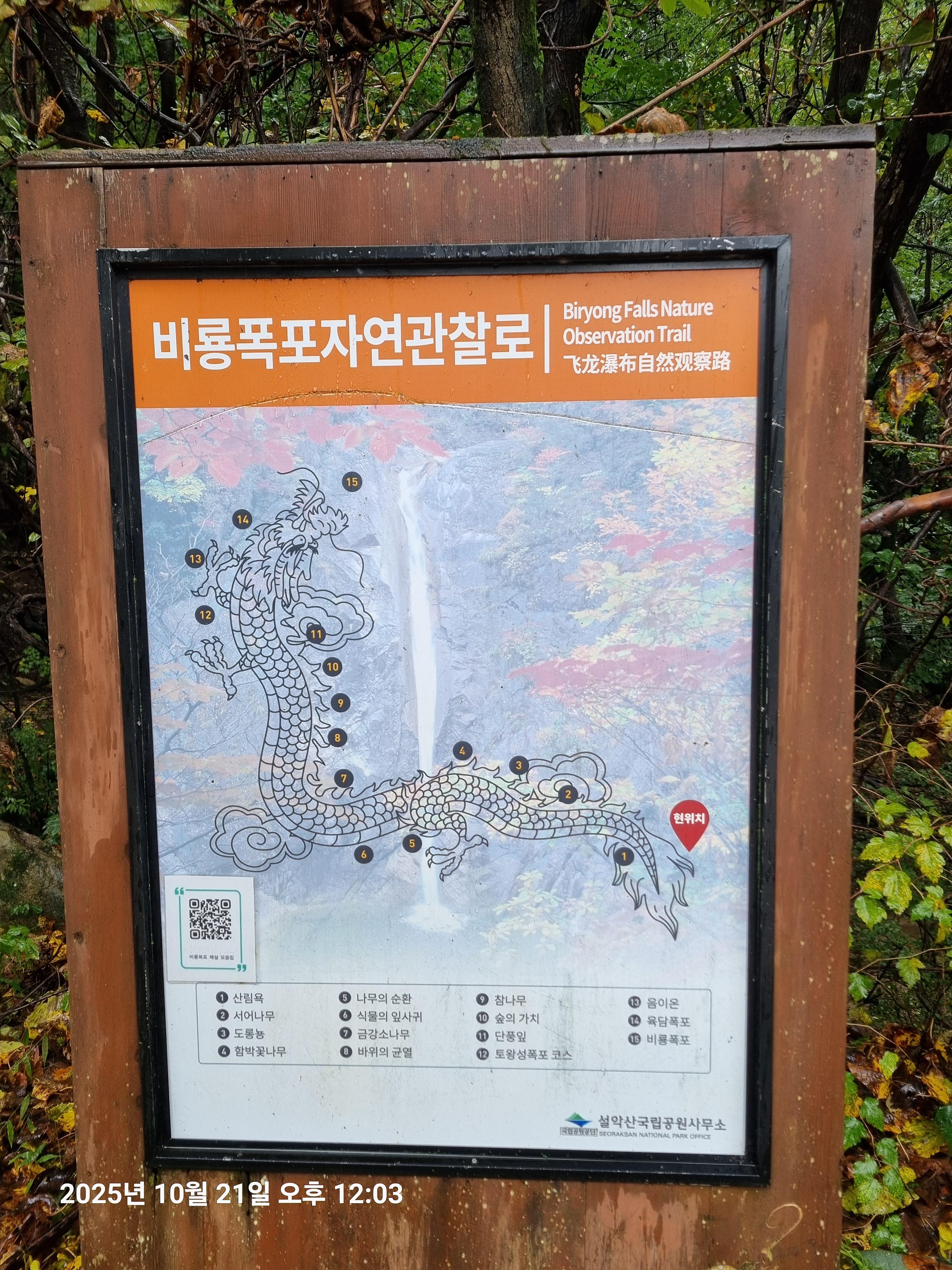 2025년 10월 28일 화요일. 마포산사랑산악회 회원들과 함께 ... 설악동은 비가 내린다. 계속 비가 내려 토왕성폭포 전망대와 울산바위 아래 흔들바위 계조암까지 산책하고 돌아왔다.