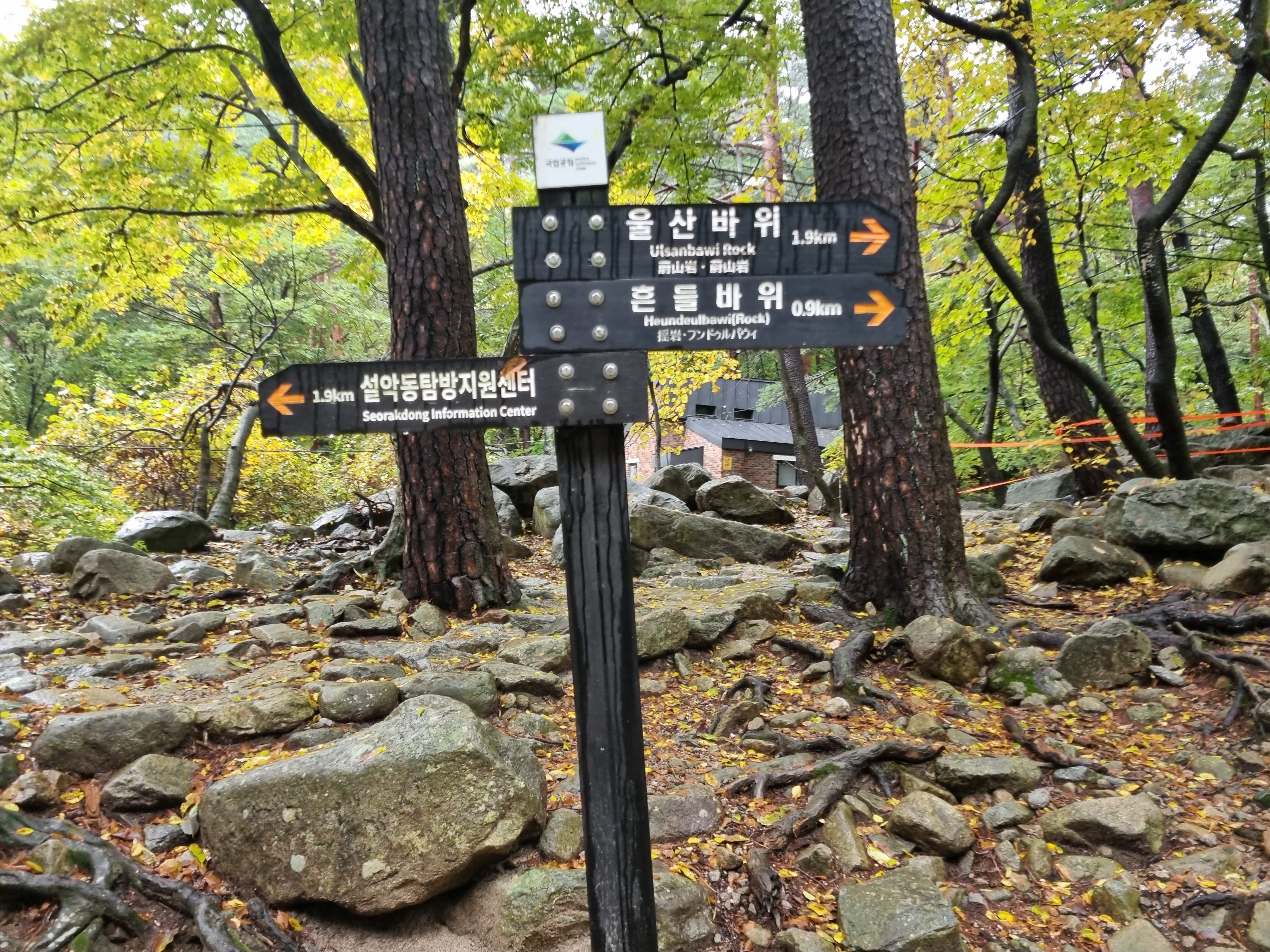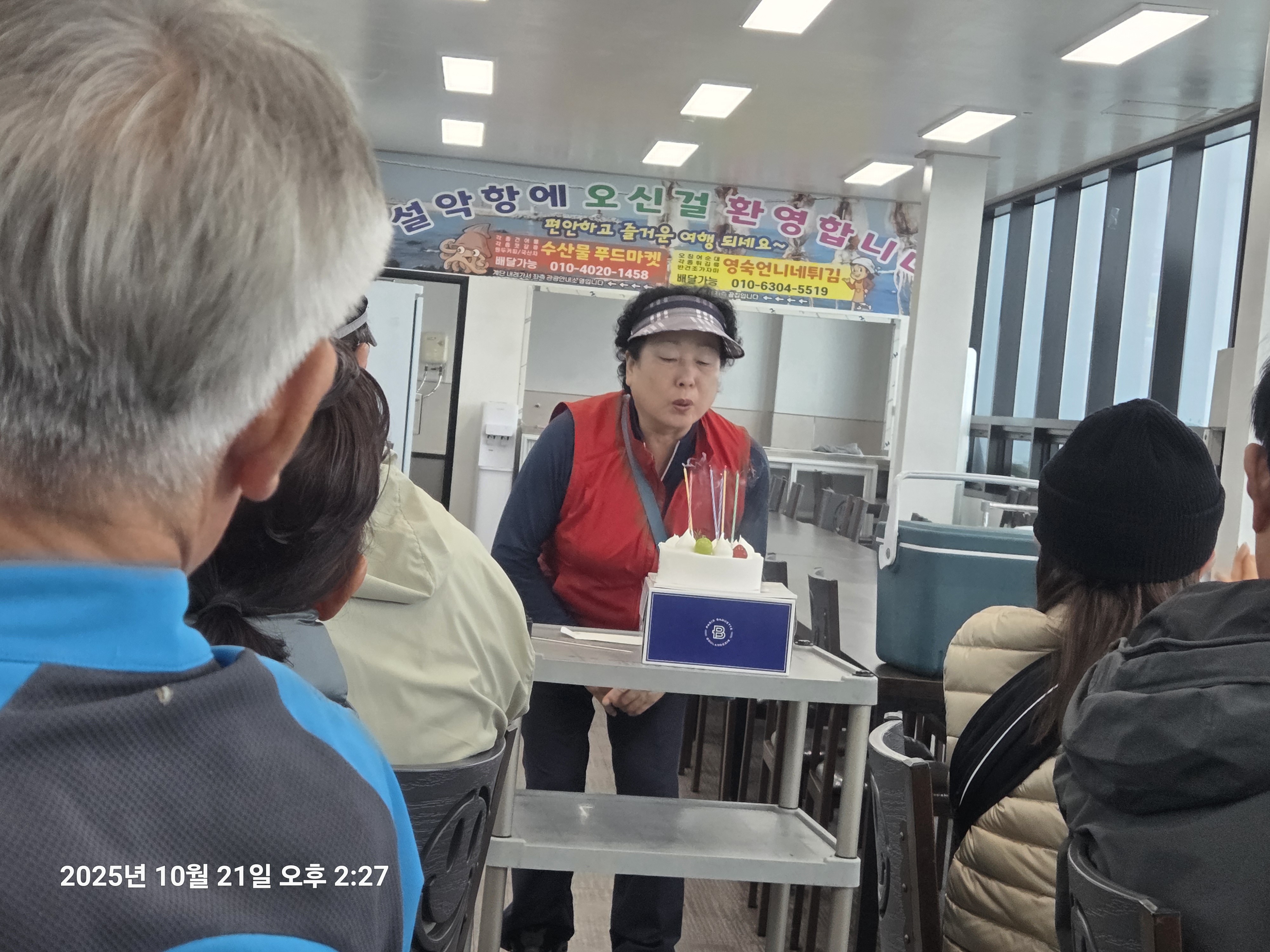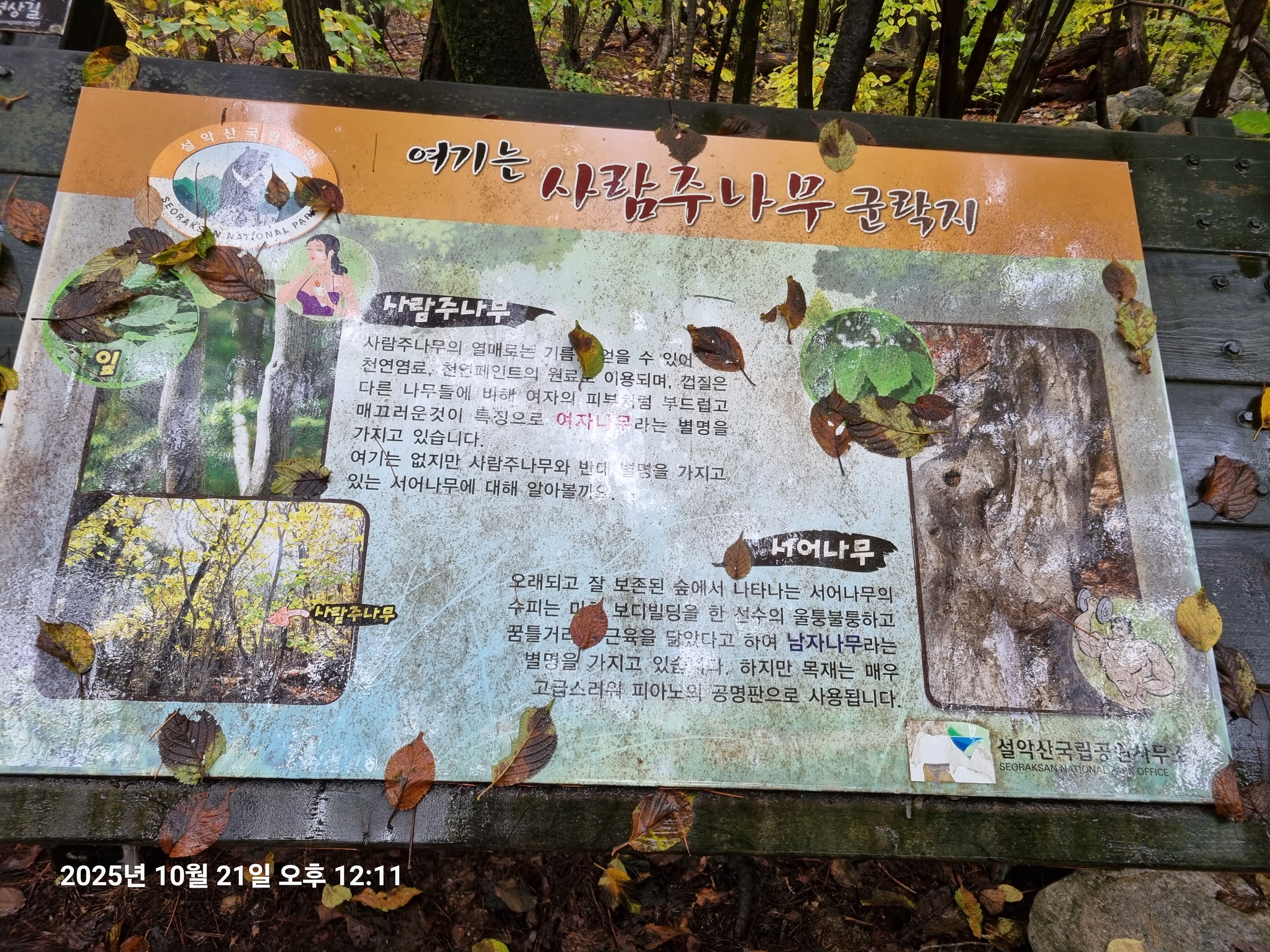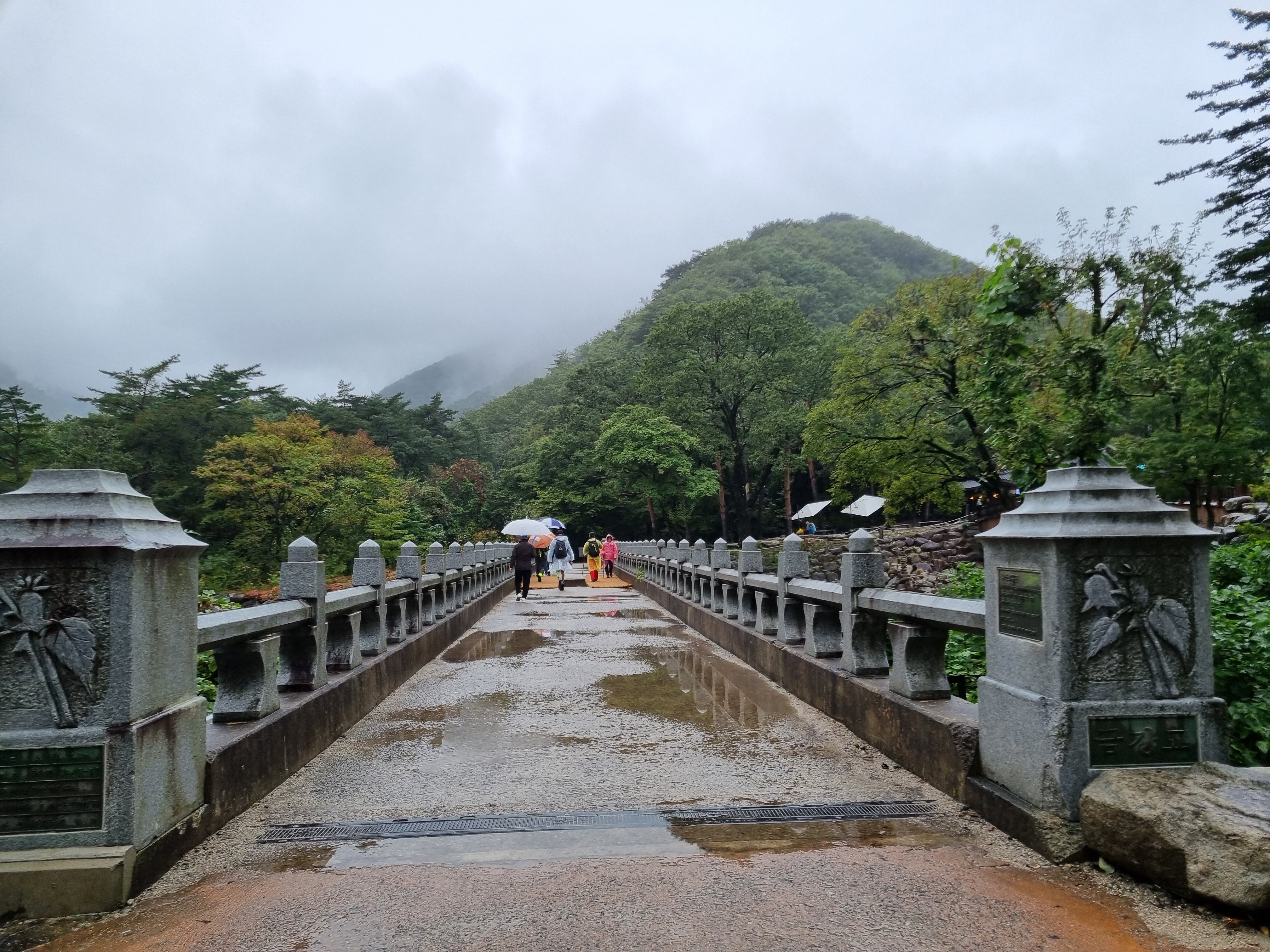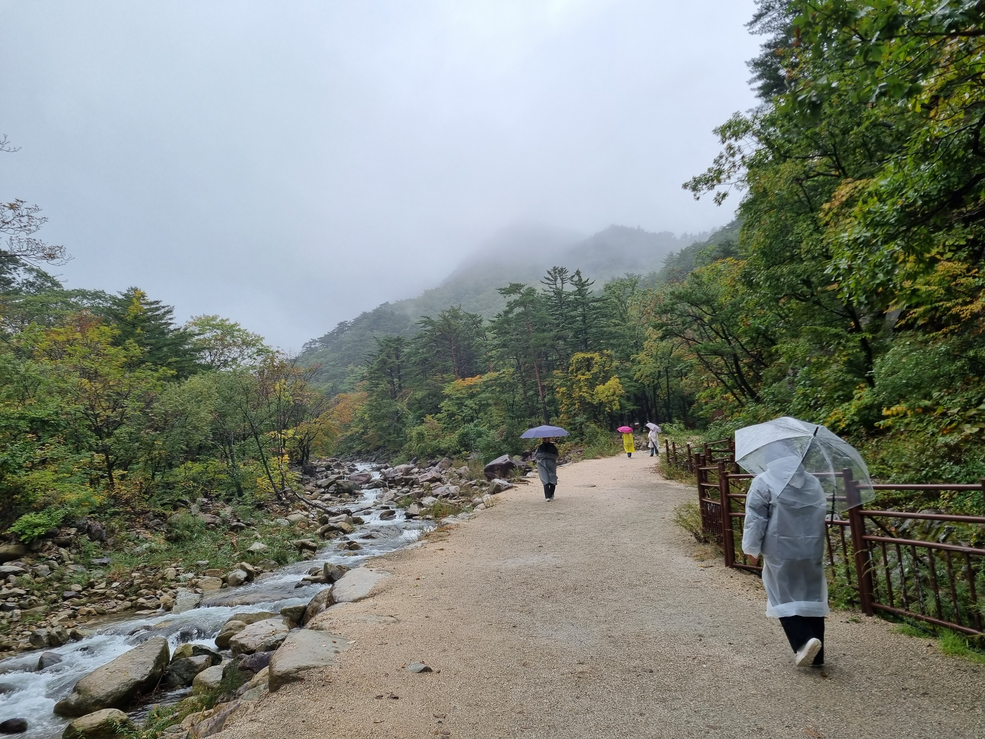 2025년 10월 28일 화요일. 마포산사랑산악회 회원들과 함께 ... 설악동은 비가 내린다. 계속 비가 내려 토왕성폭포 전망대와 울산바위 아래 흔들바위 계조암까지 산책하고 돌아왔다.