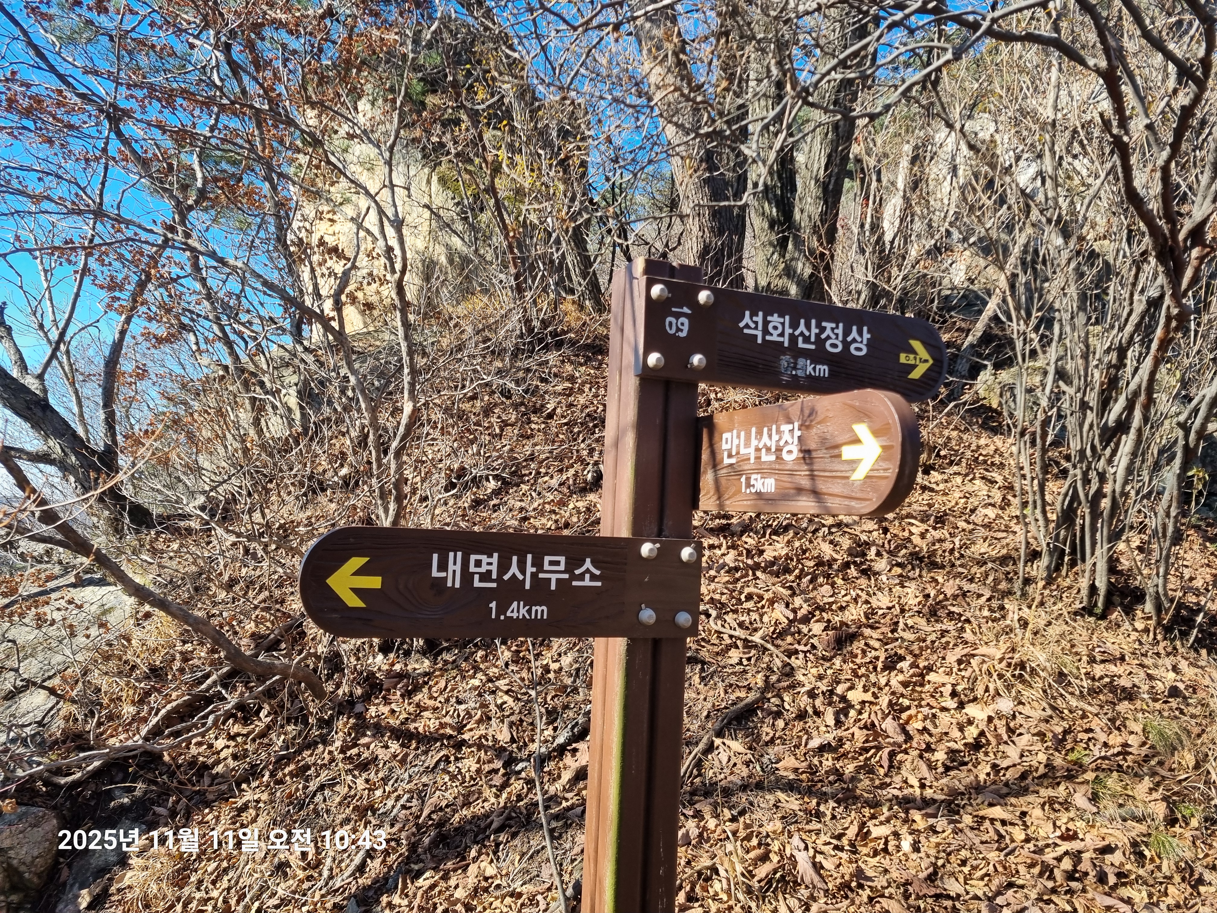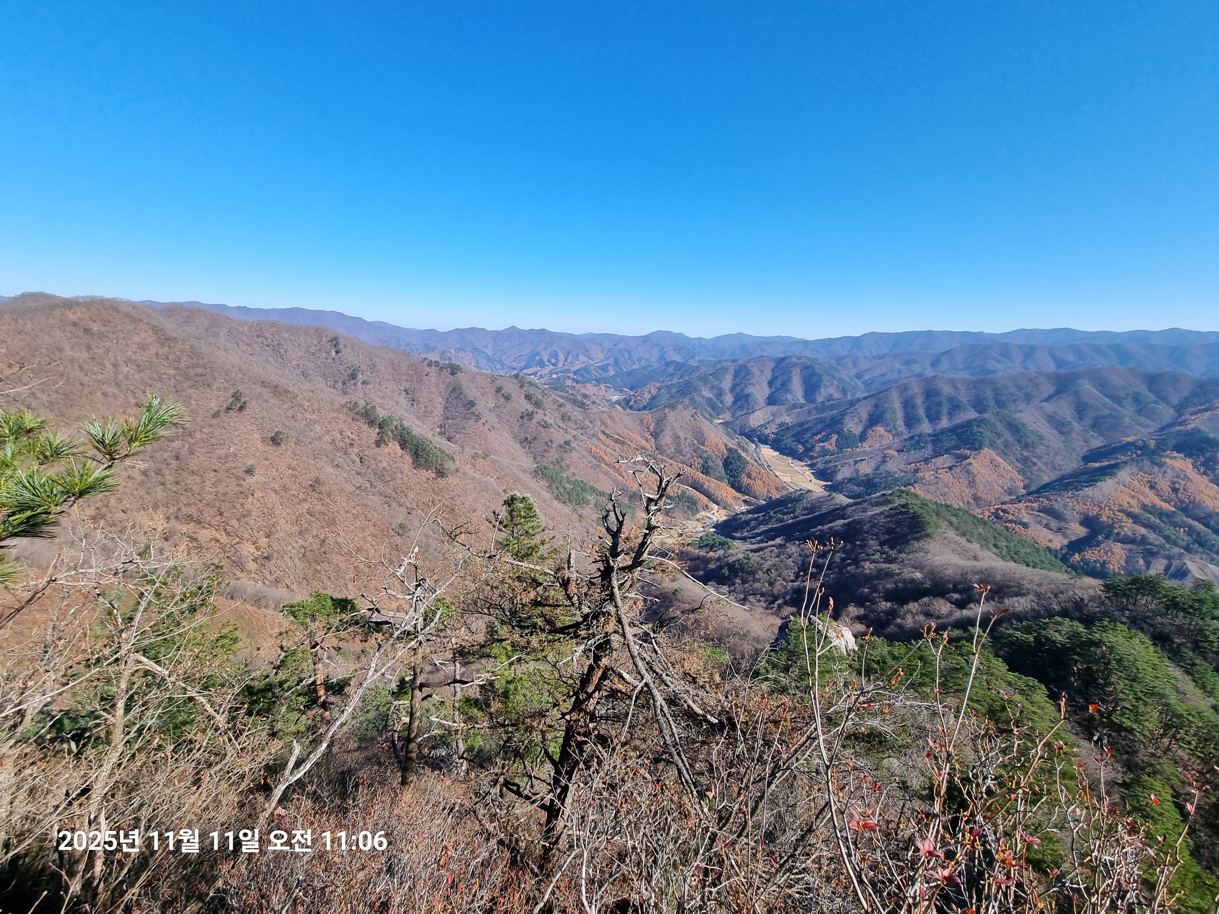 2025년 11월 11일 화요일. 아침에는 영하이나 낮에는 아주 맑아 따뜻하고 조망이 좋은 날이다.