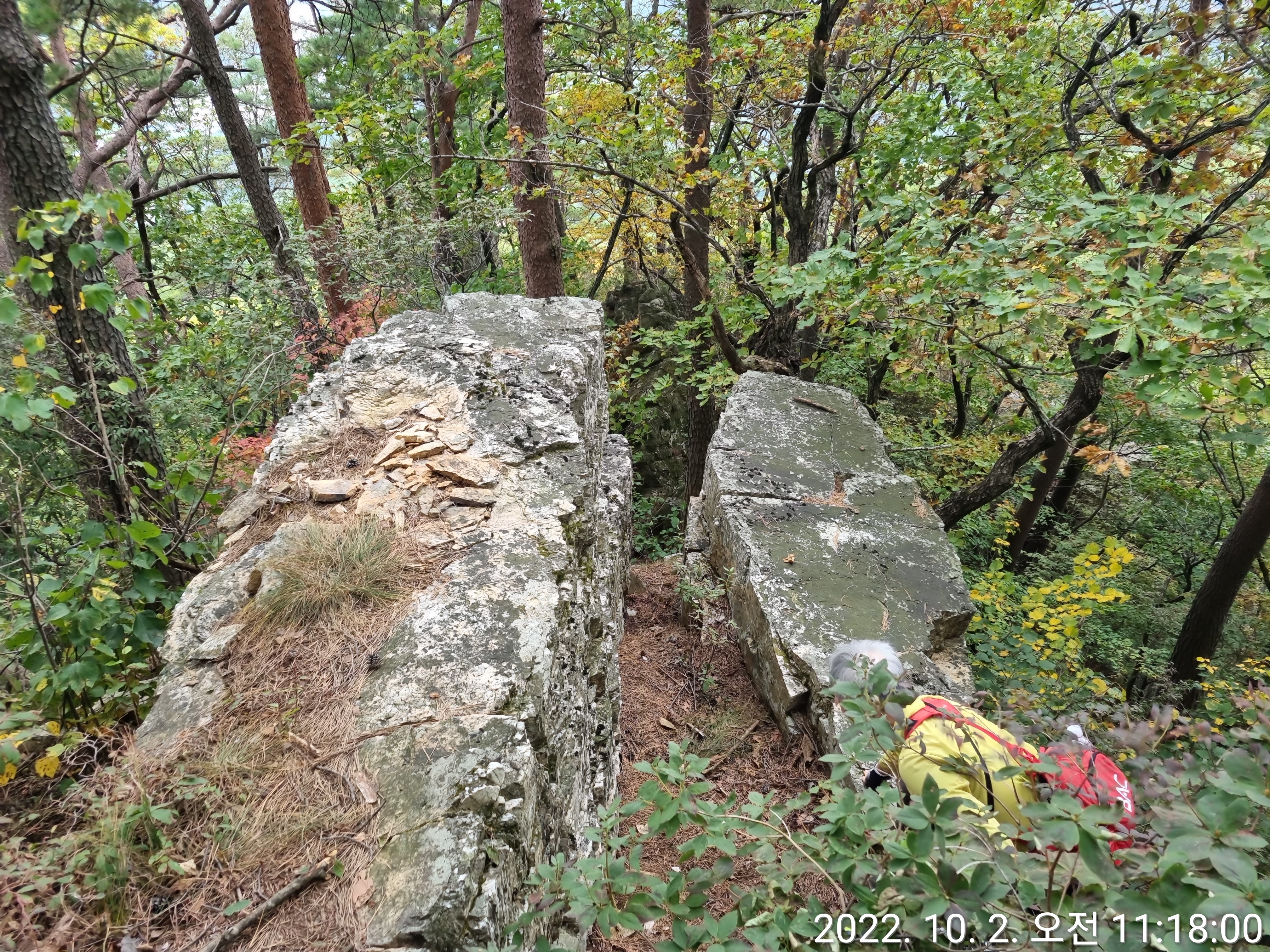 ▼ 능선 뒷편 암벽 꼭대기에 갔다 오기로 한다.