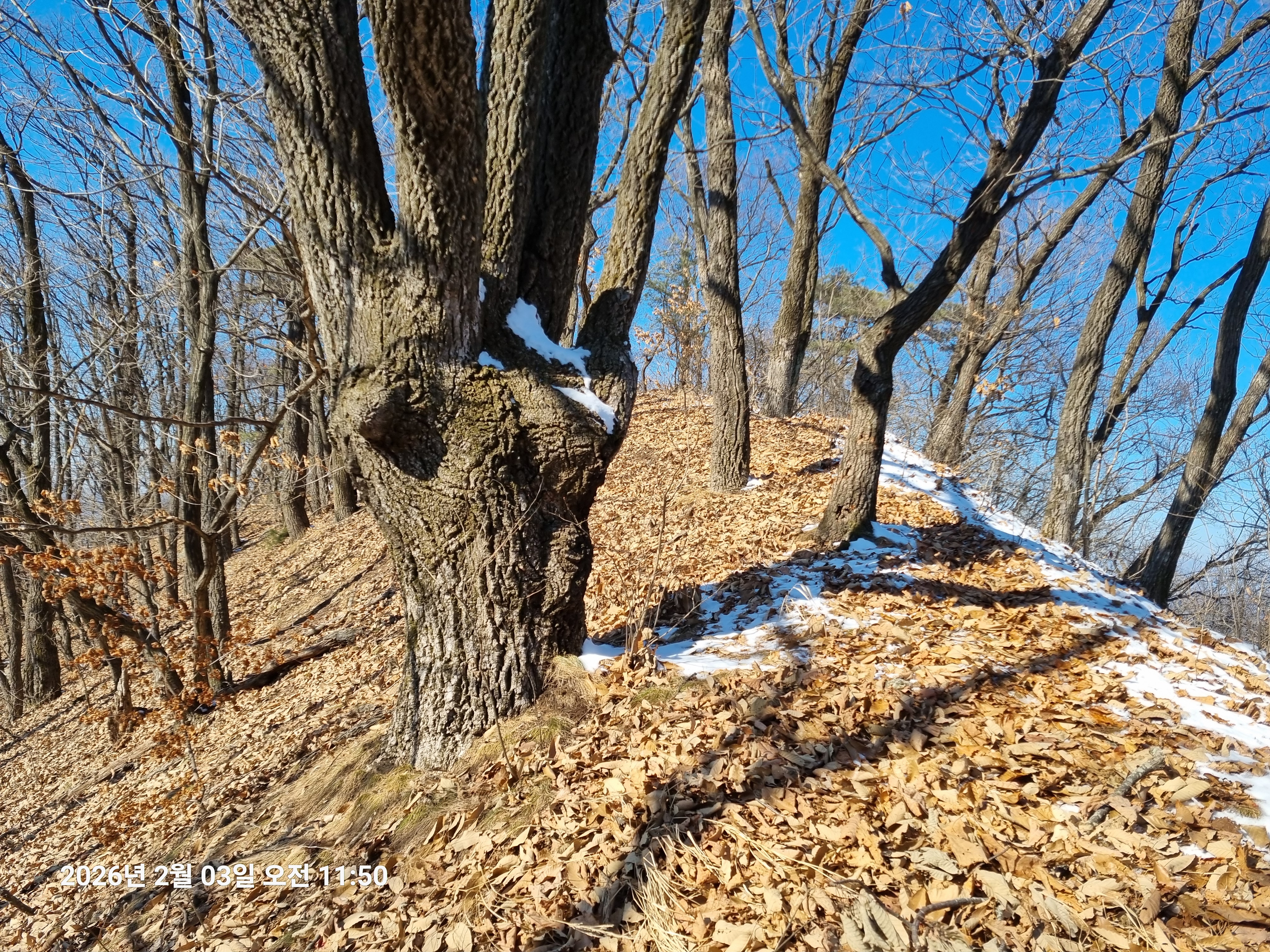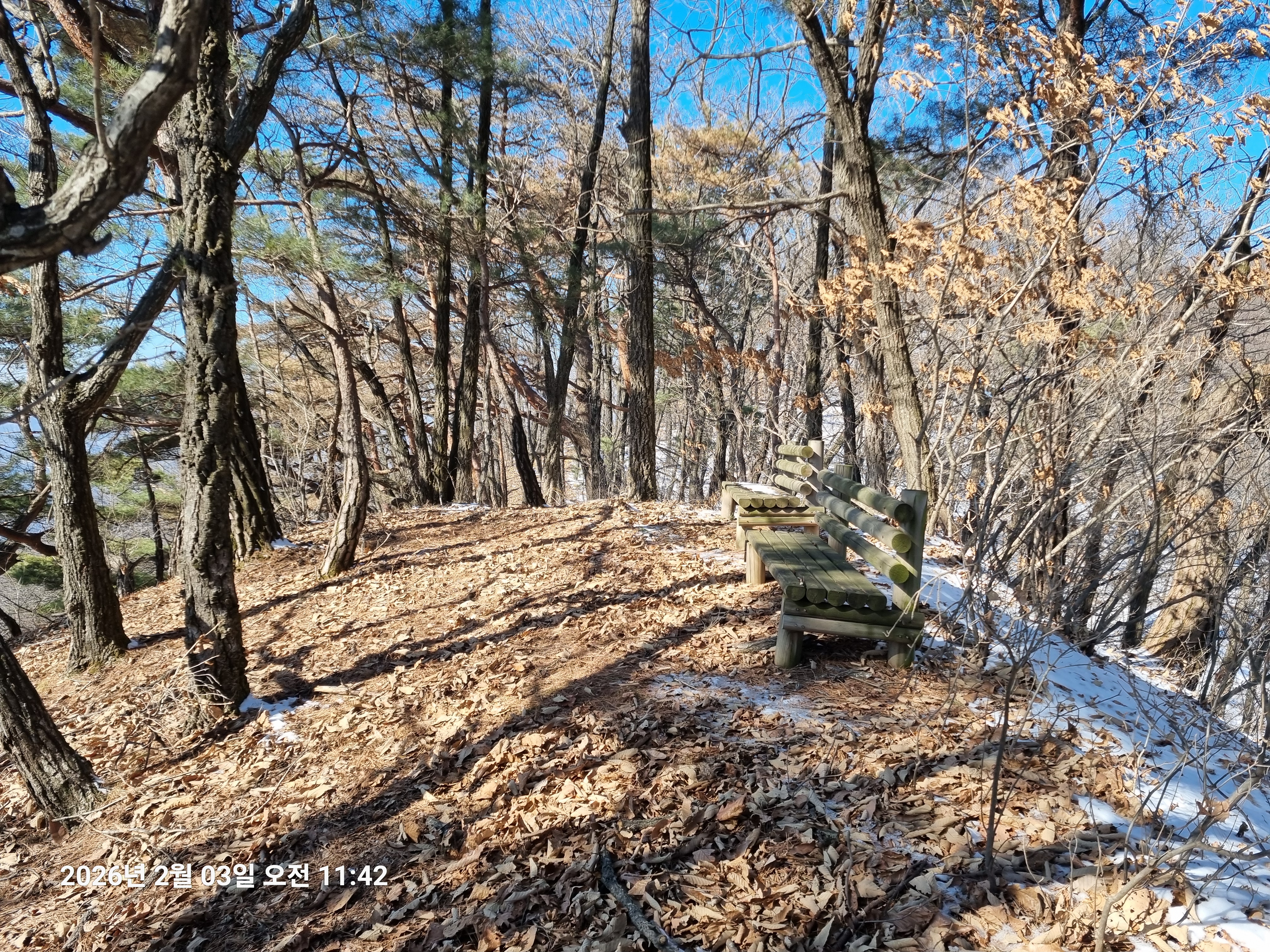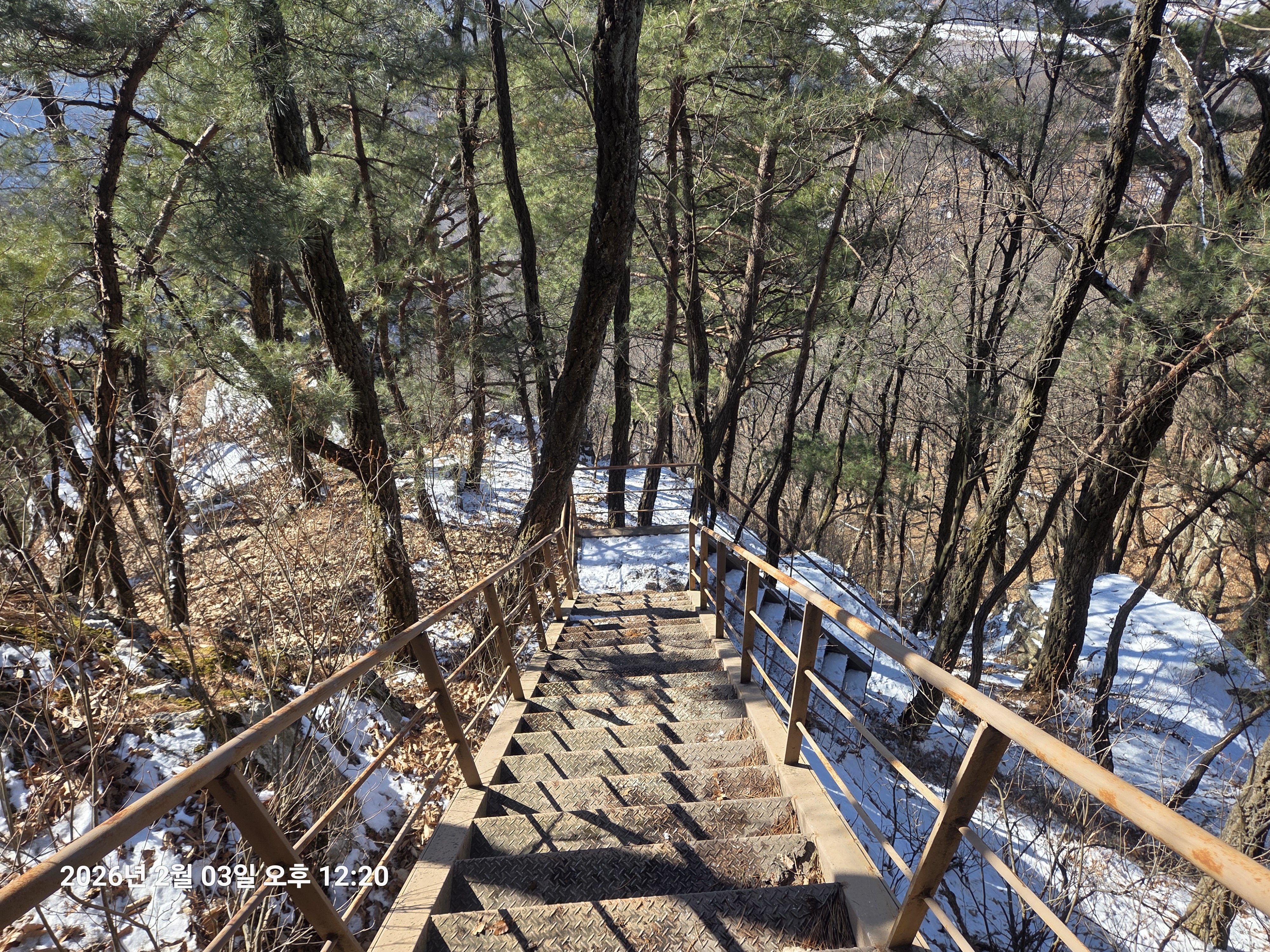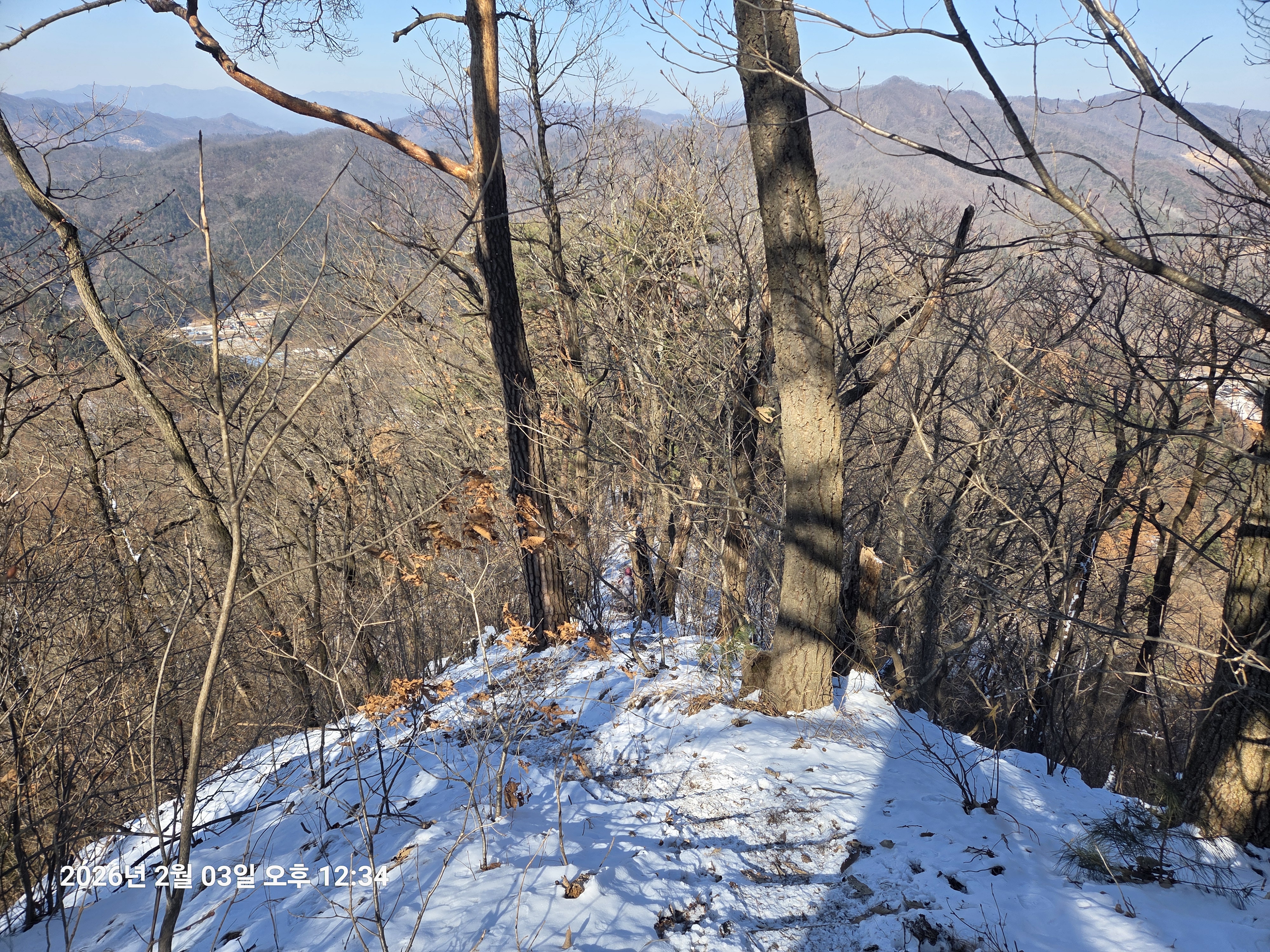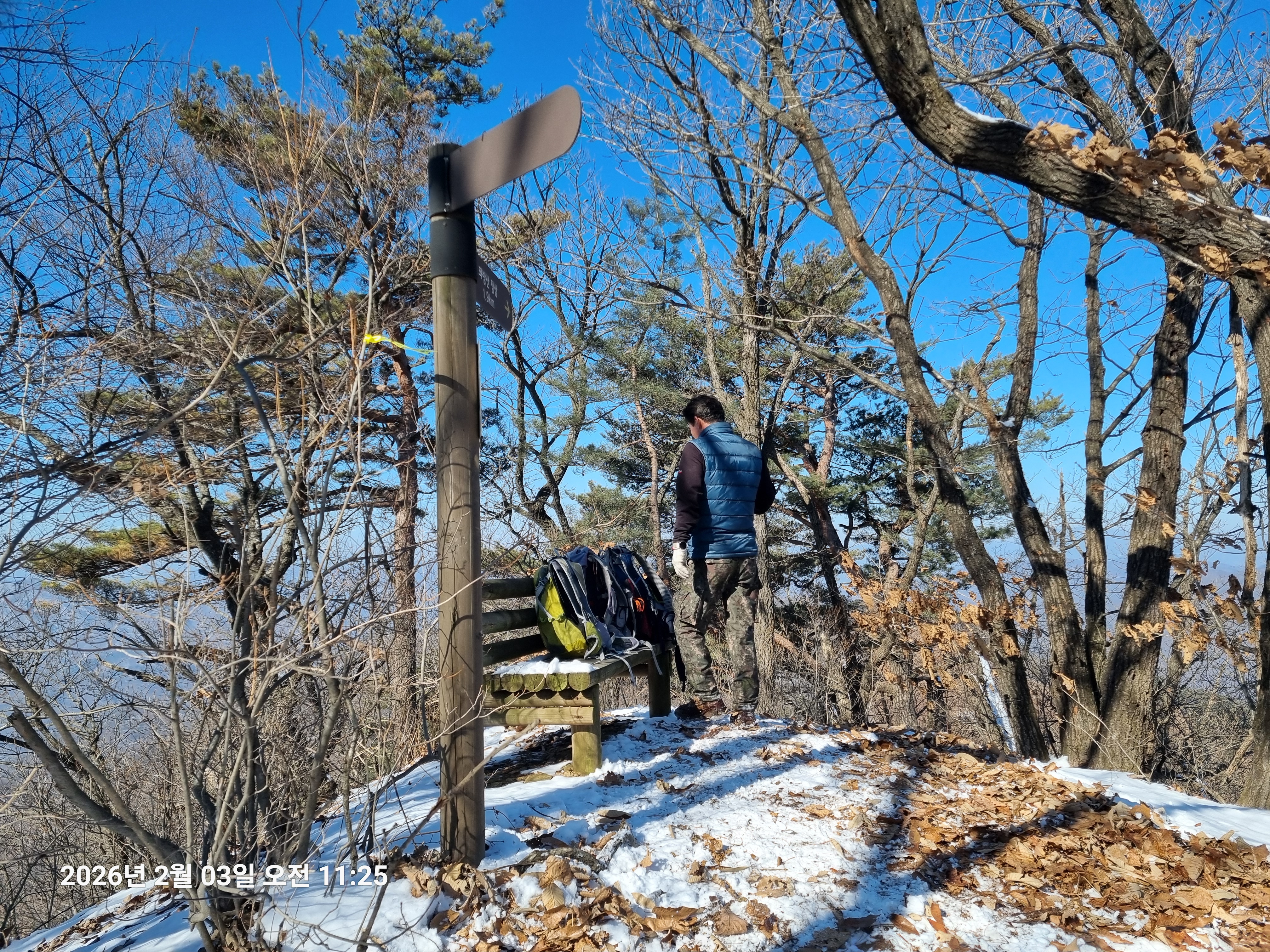 2026년 2월 3일. 화요일. 아침에는 영하 10도로 내려가 추우나 한낮에는 영상기온으로 올라가서 따뜻하다. 눈이 내려 미끄러웠고 전반적인 등산로가 거칠었다.