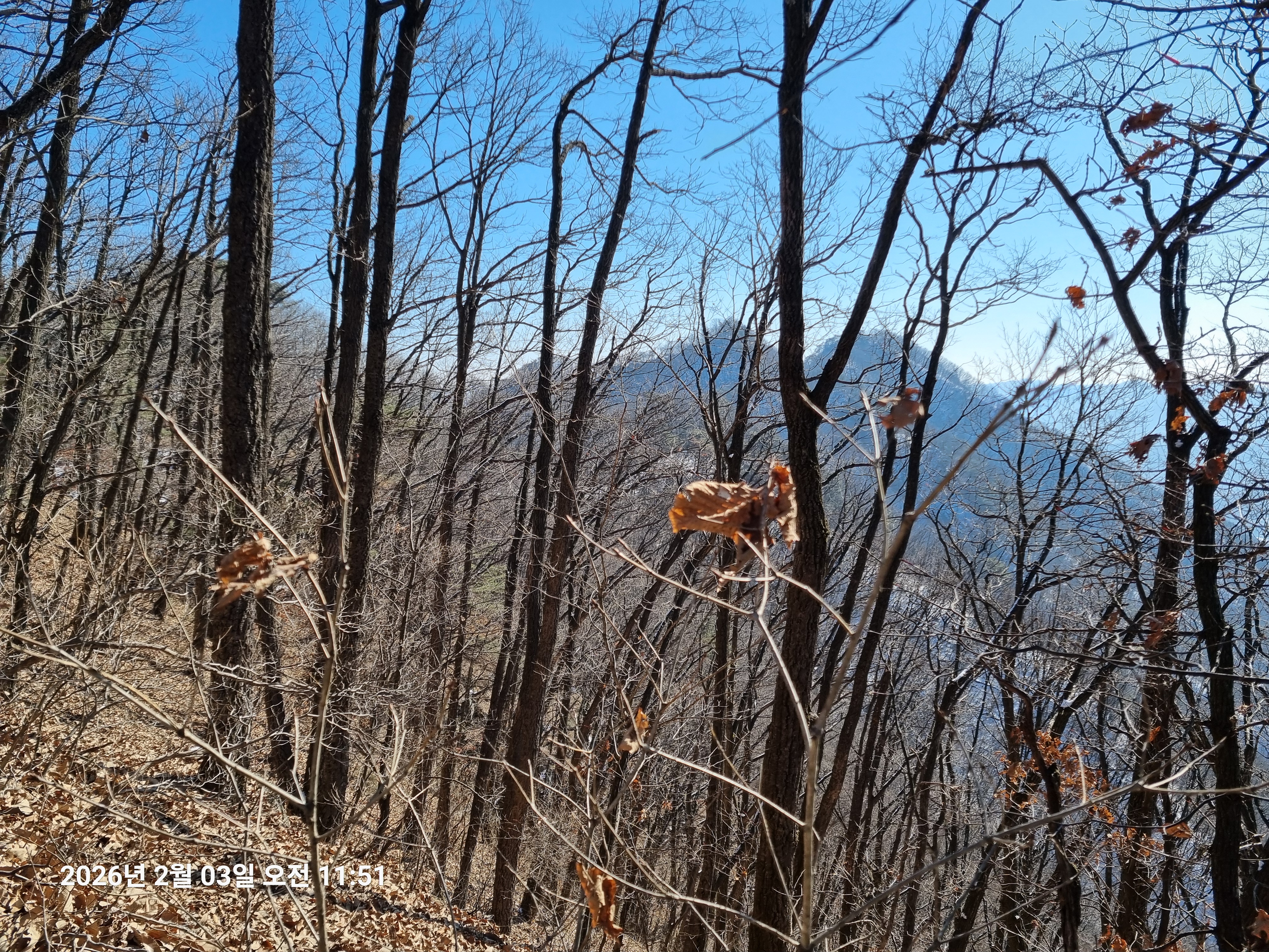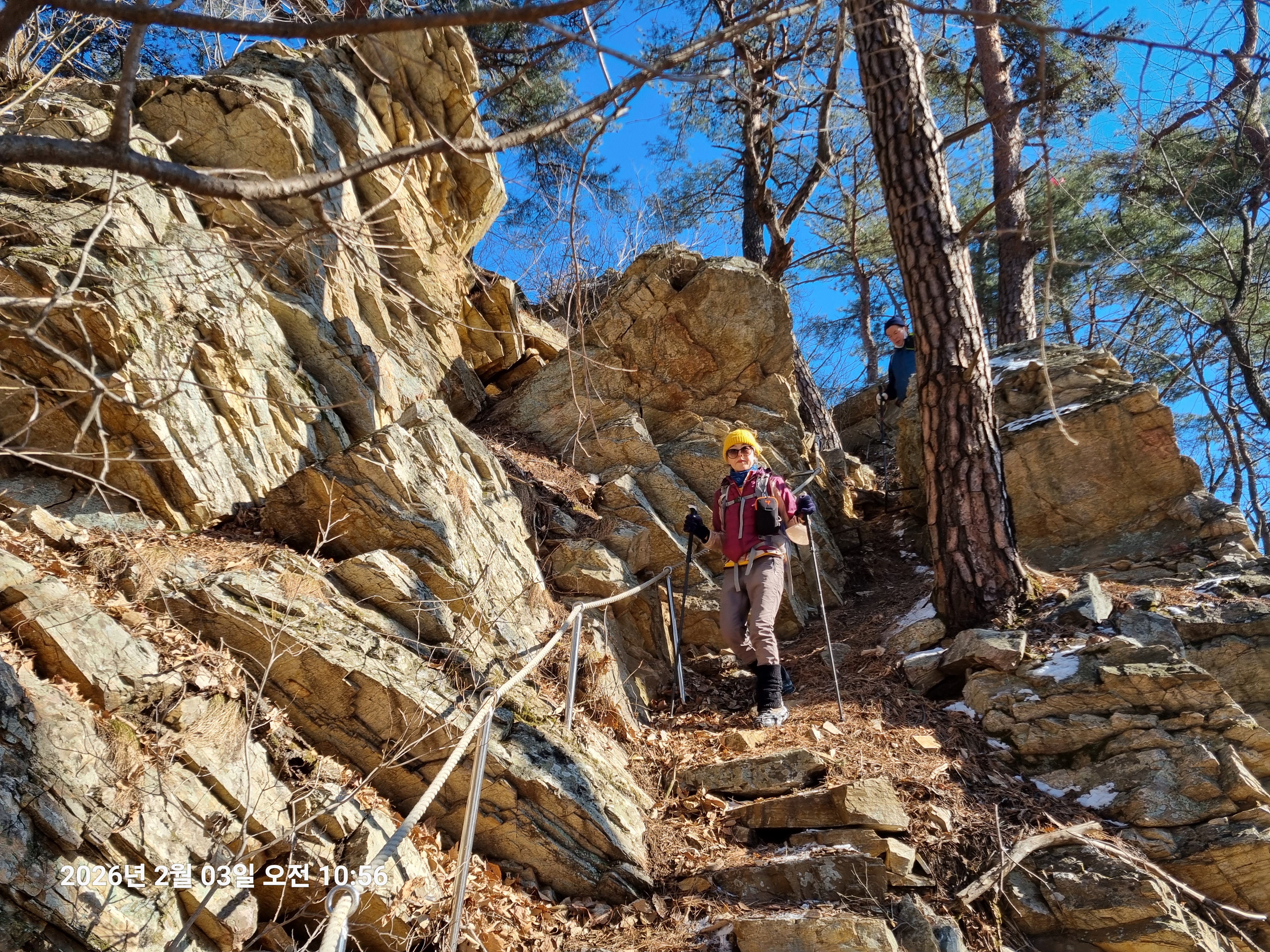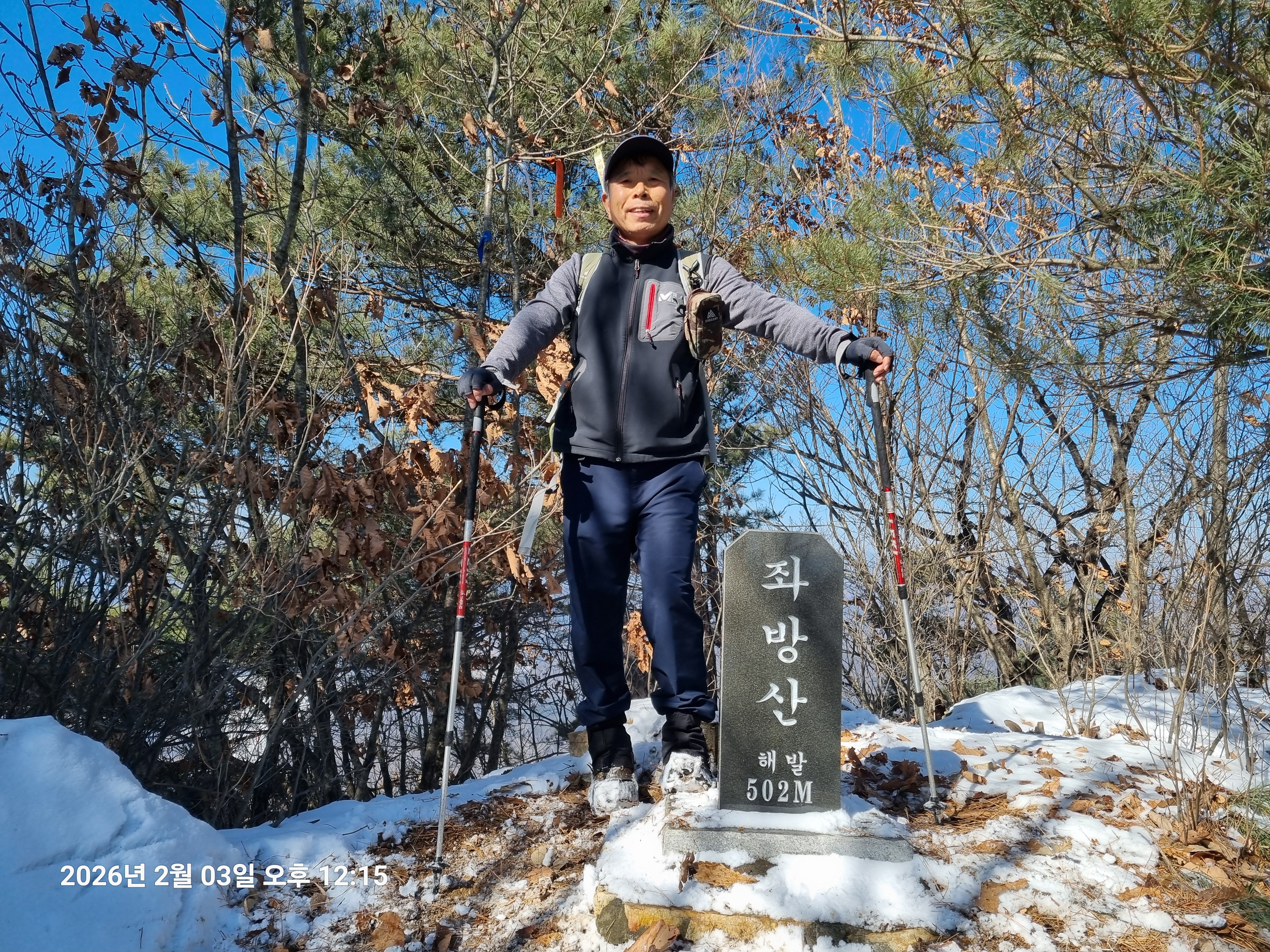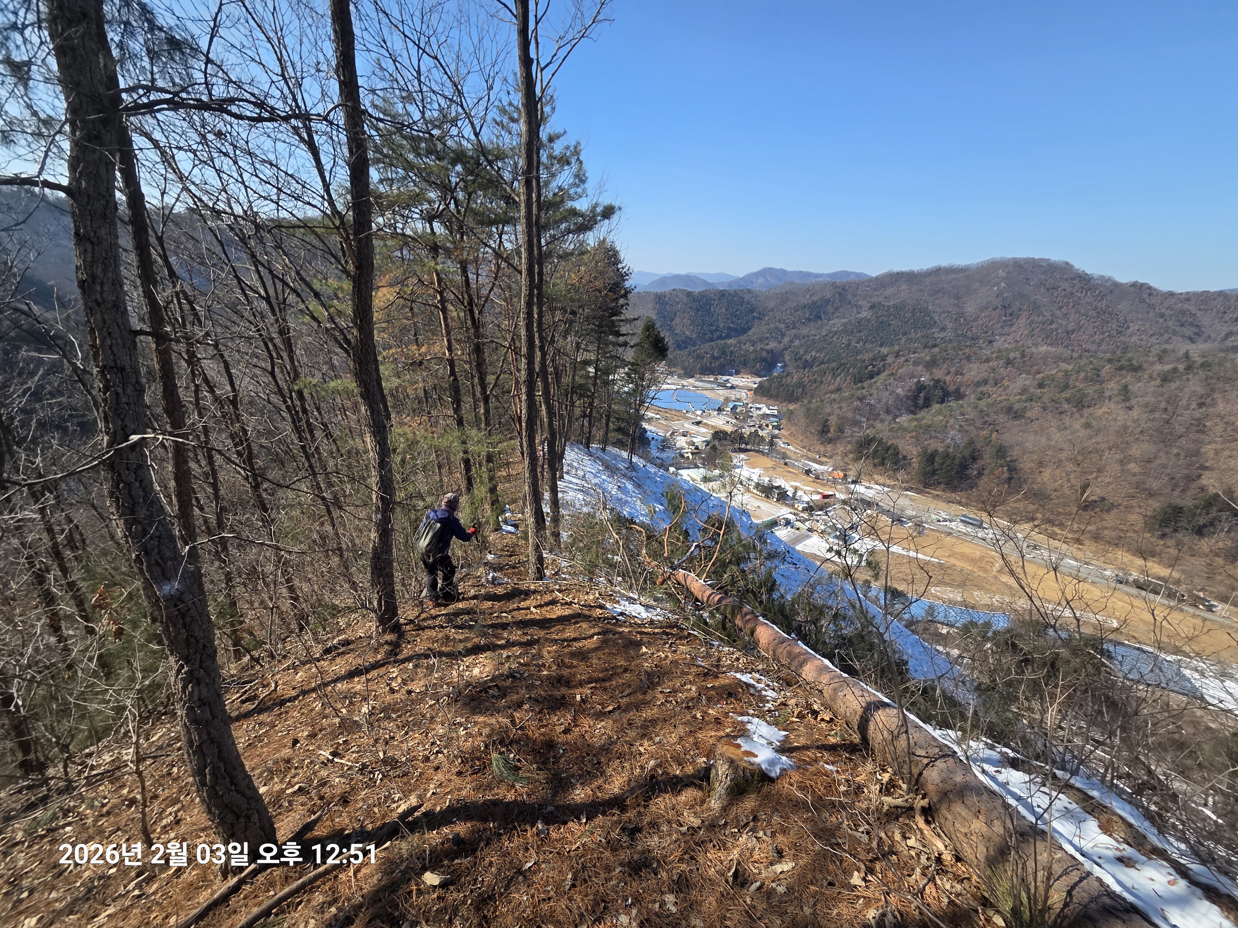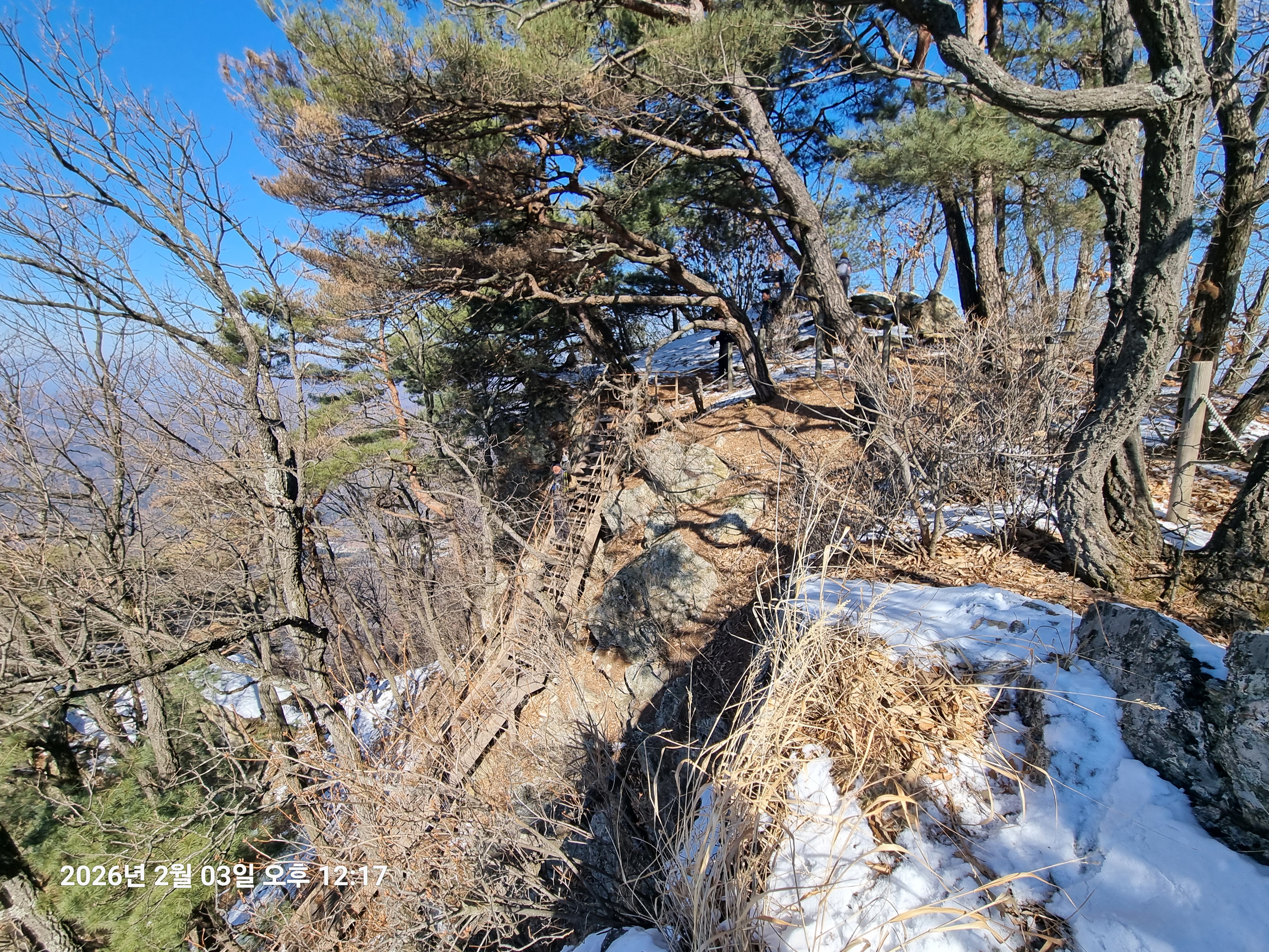 2026년 2월 3일. 화요일. 아침에는 영하 10도로 내려가 추우나 한낮에는 영상기온으로 올라가서 따뜻하다. 눈이 내려 미끄러웠고 전반적인 등산로가 거칠었다.
