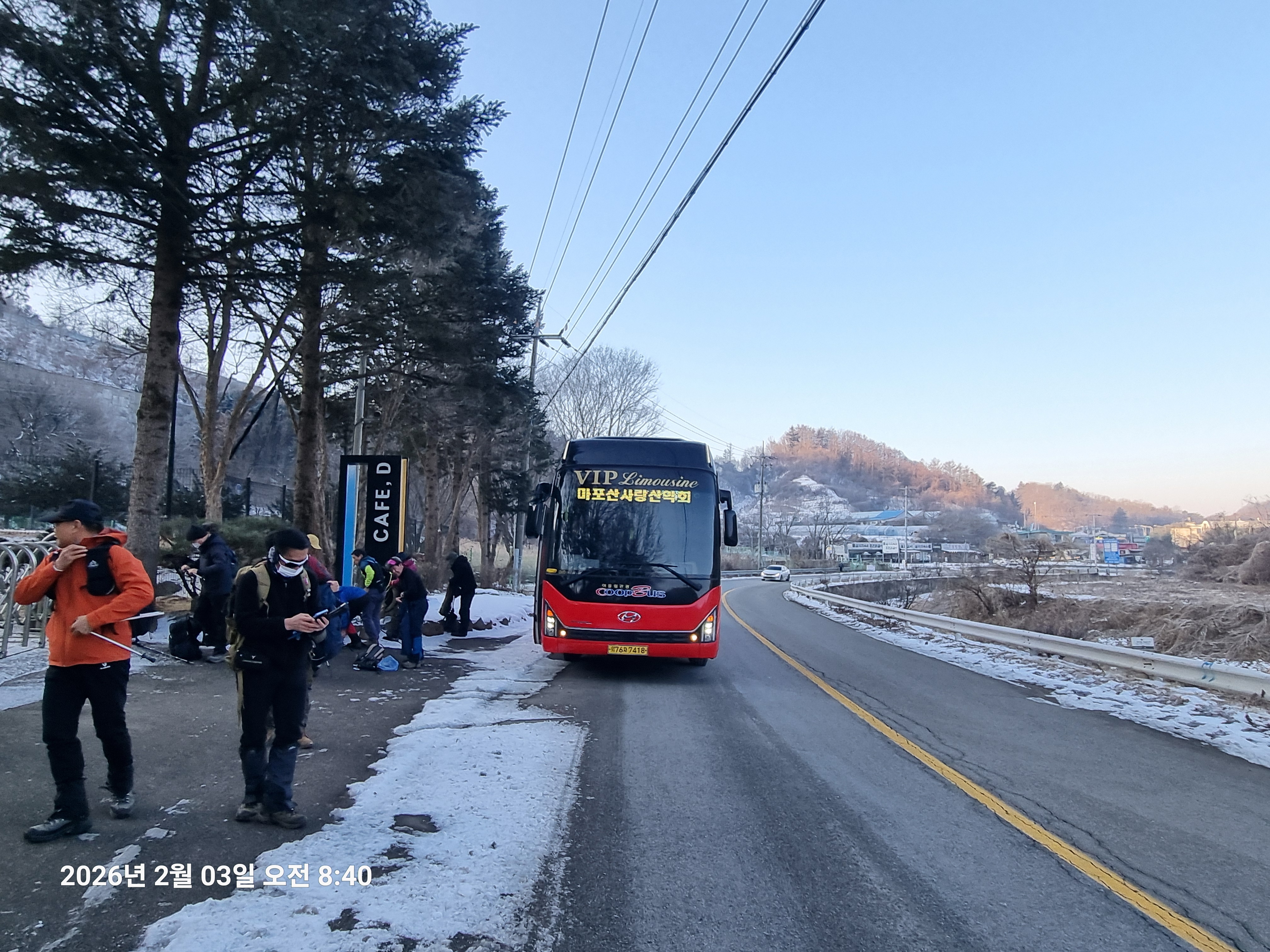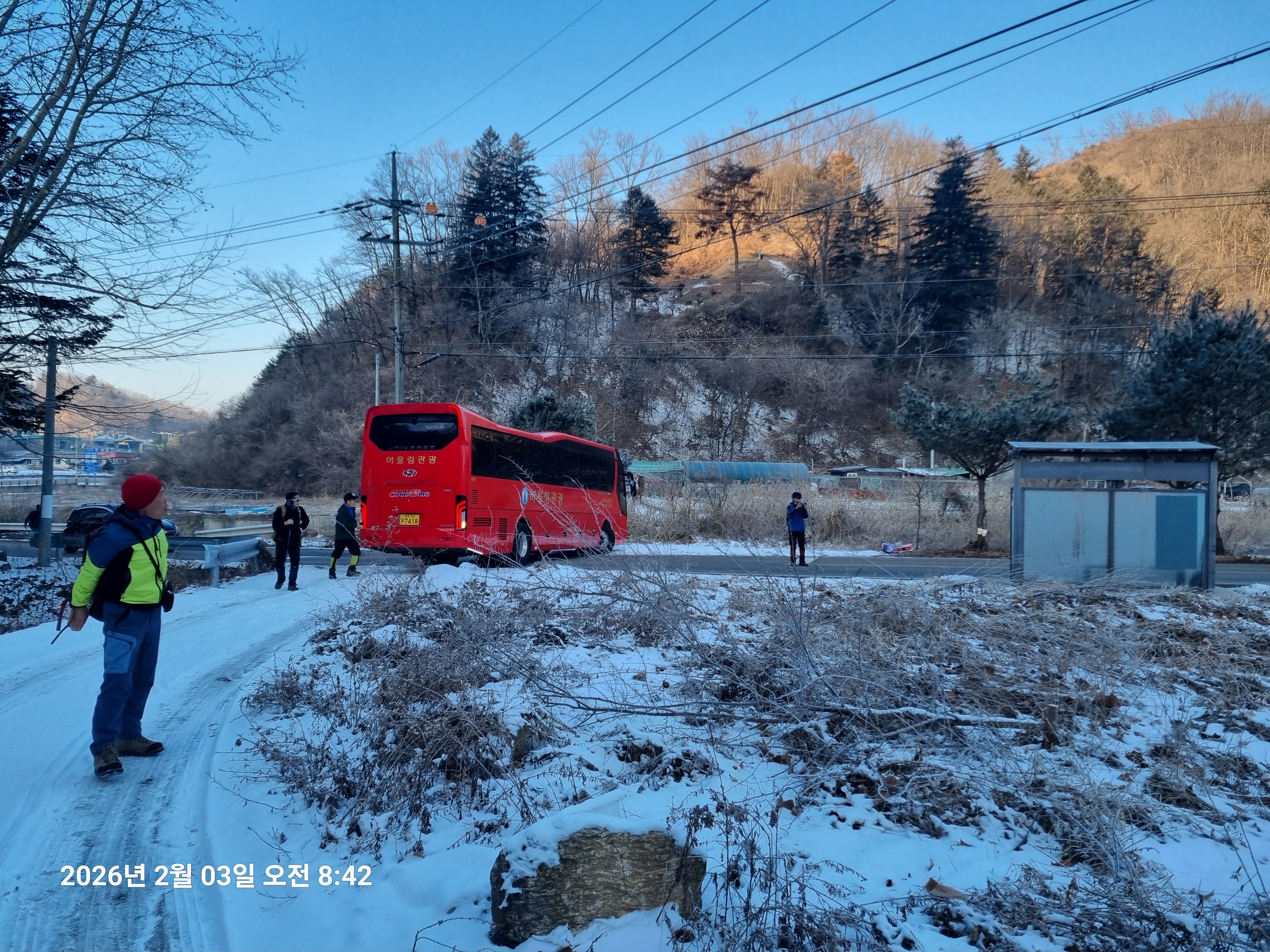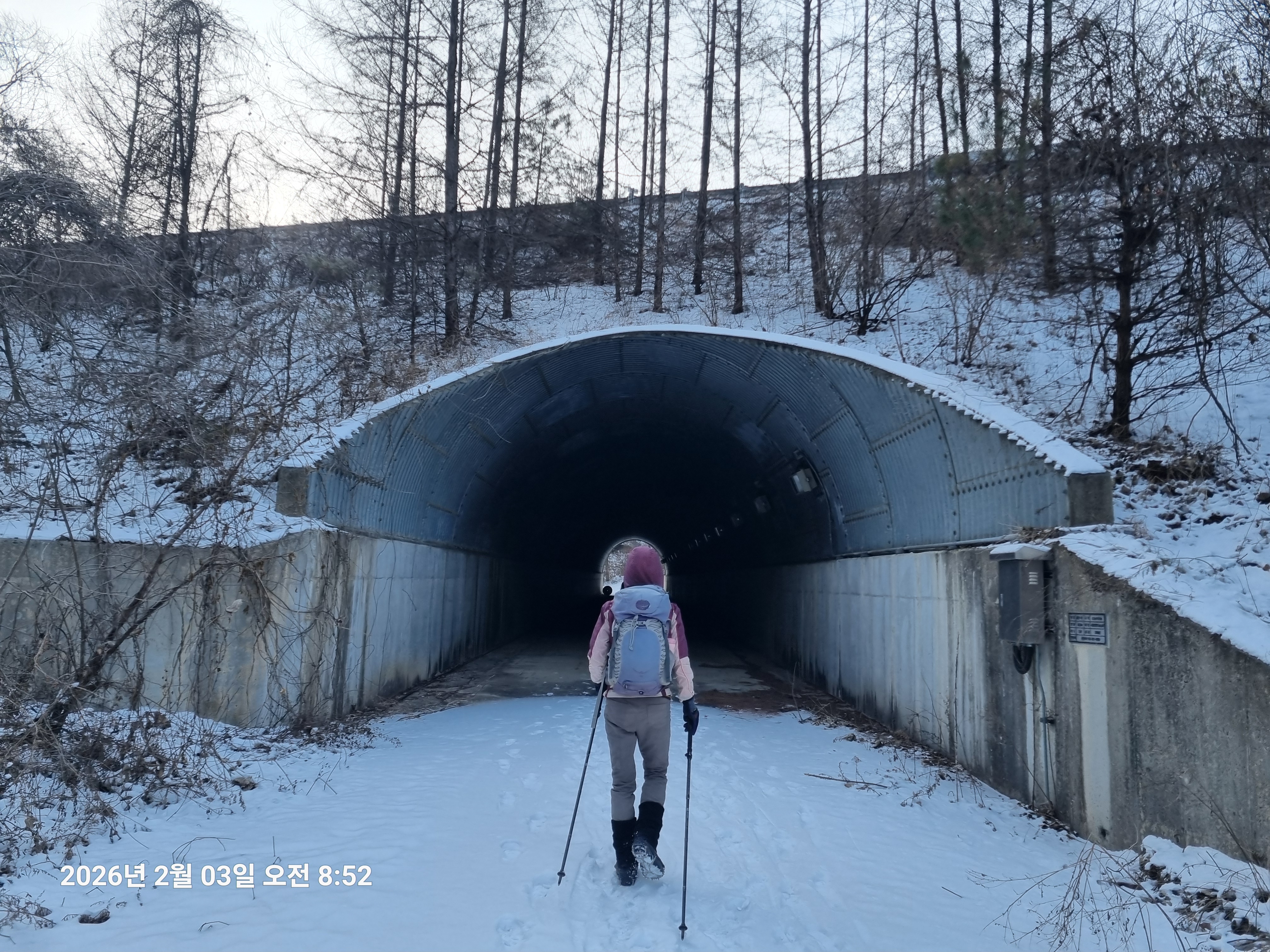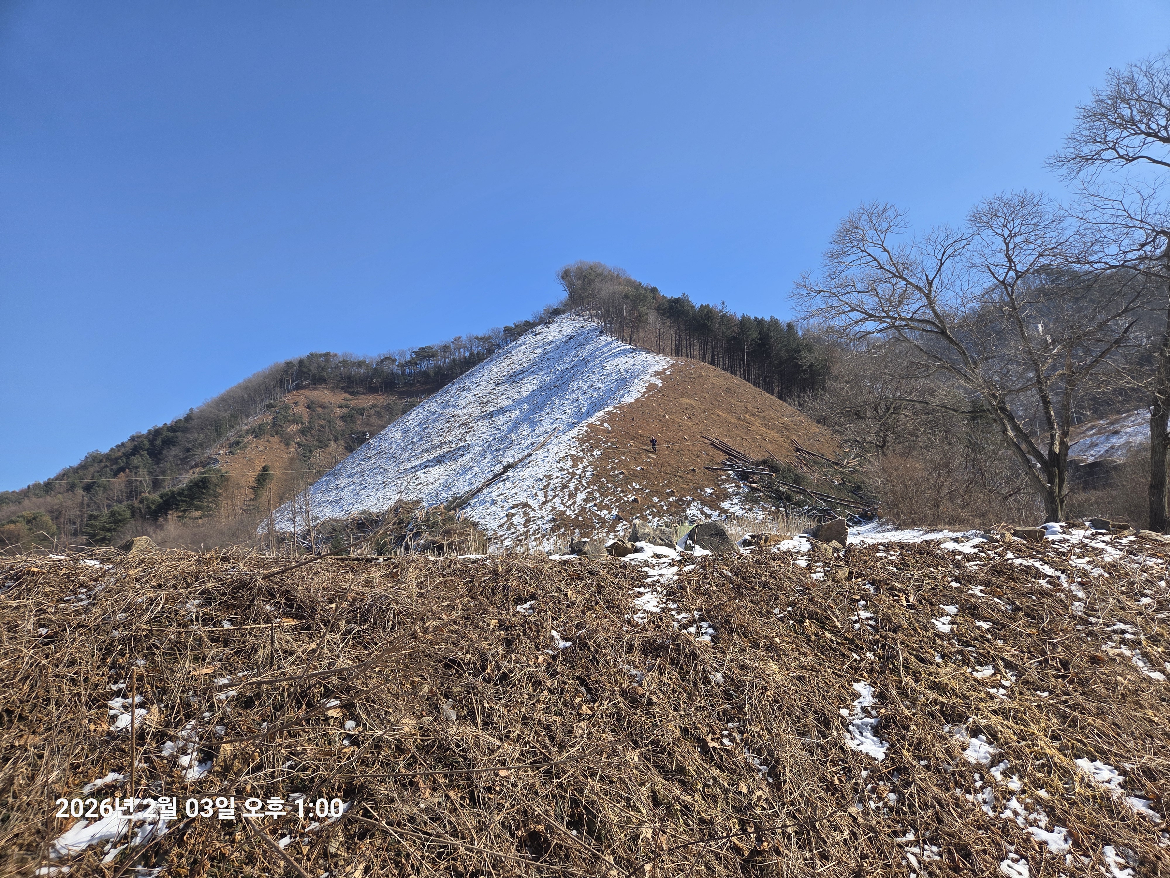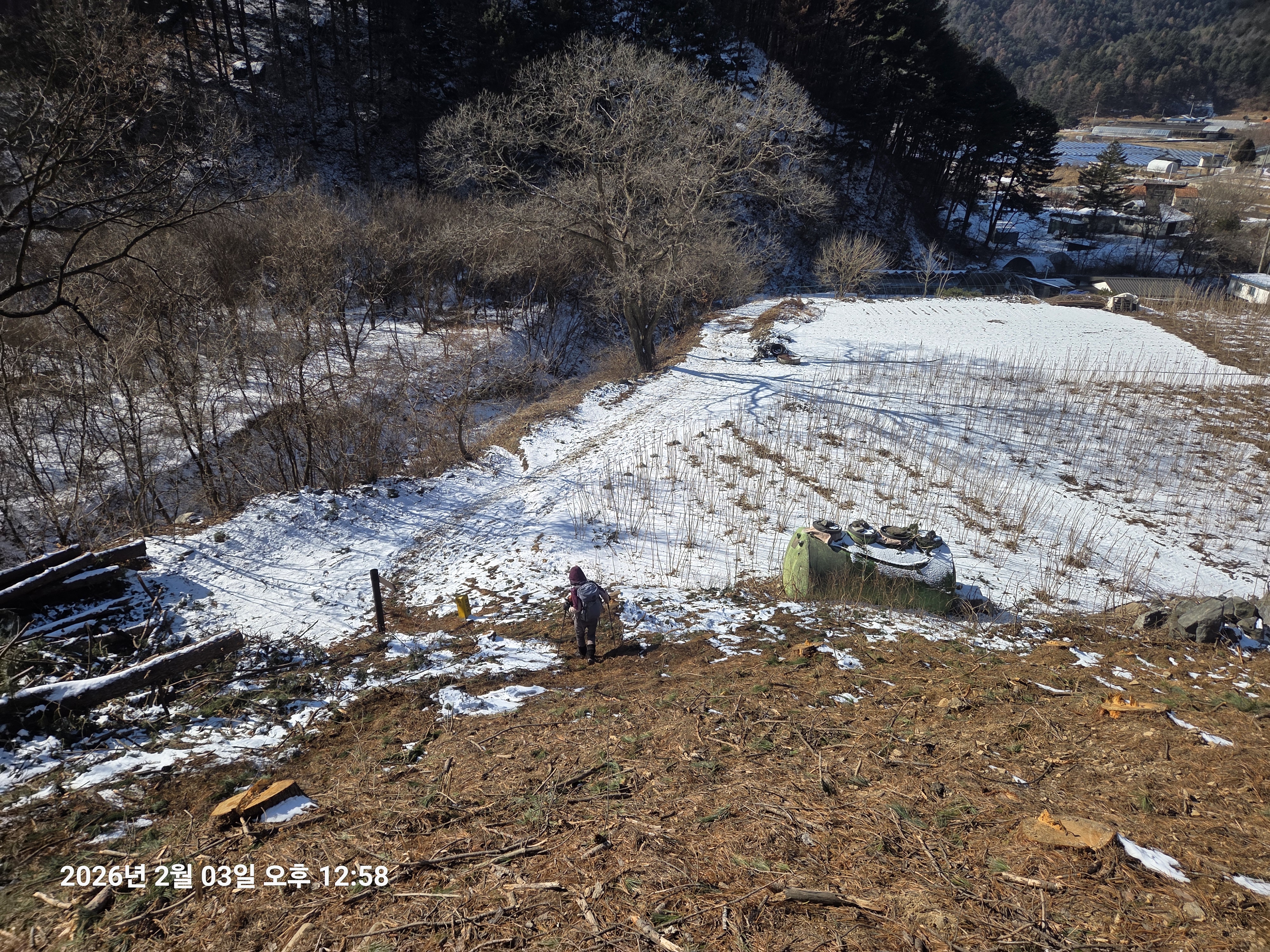 2026년 2월 3일. 화요일. 아침에는 영하 10도로 내려가 추우나 한낮에는 영상기온으로 올라가서 따뜻하다. 눈이 내려 미끄러웠고 전반적인 등산로가 거칠었다.
