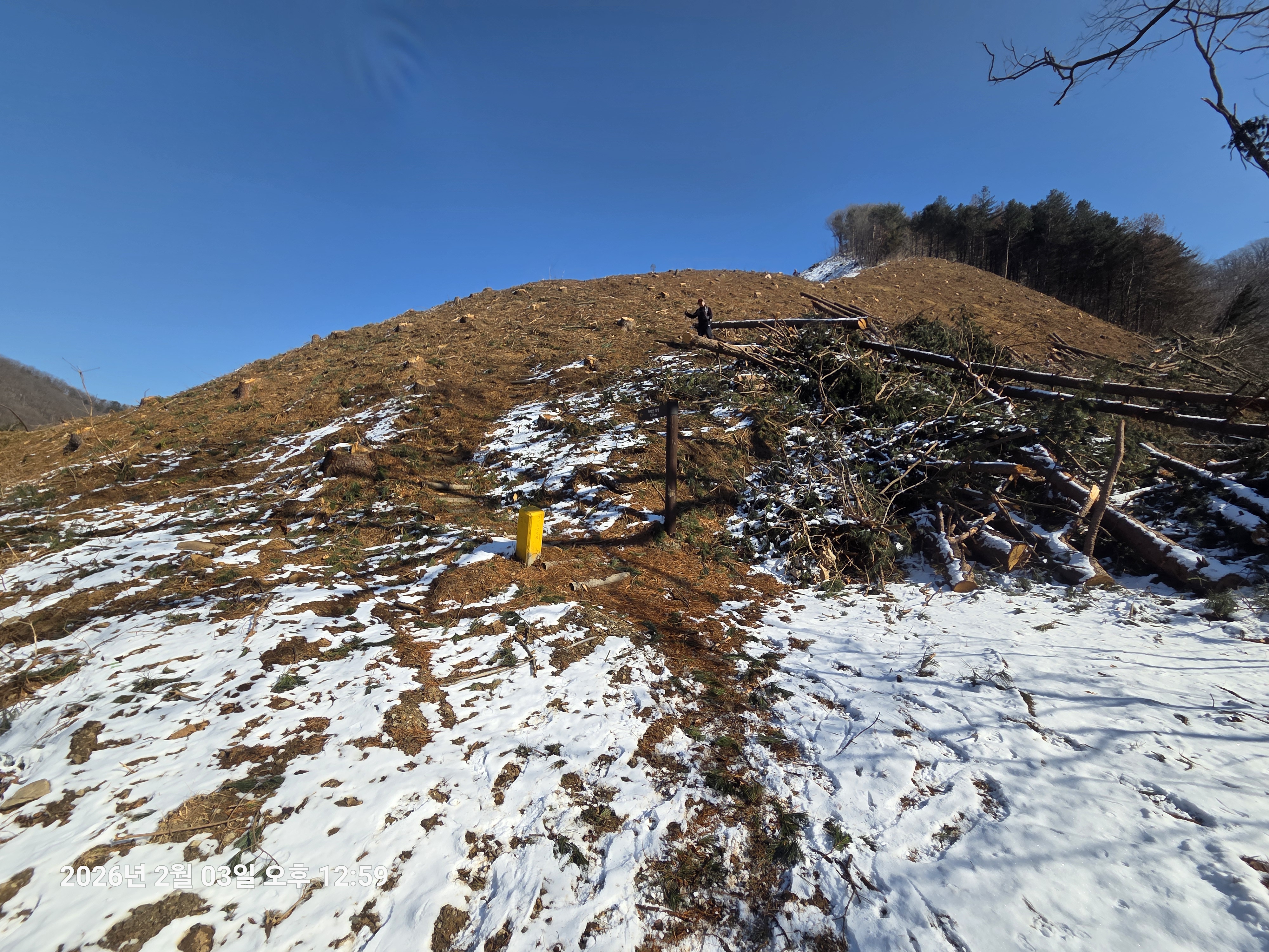 ▼ 벌목지 능선으로 내려간다.