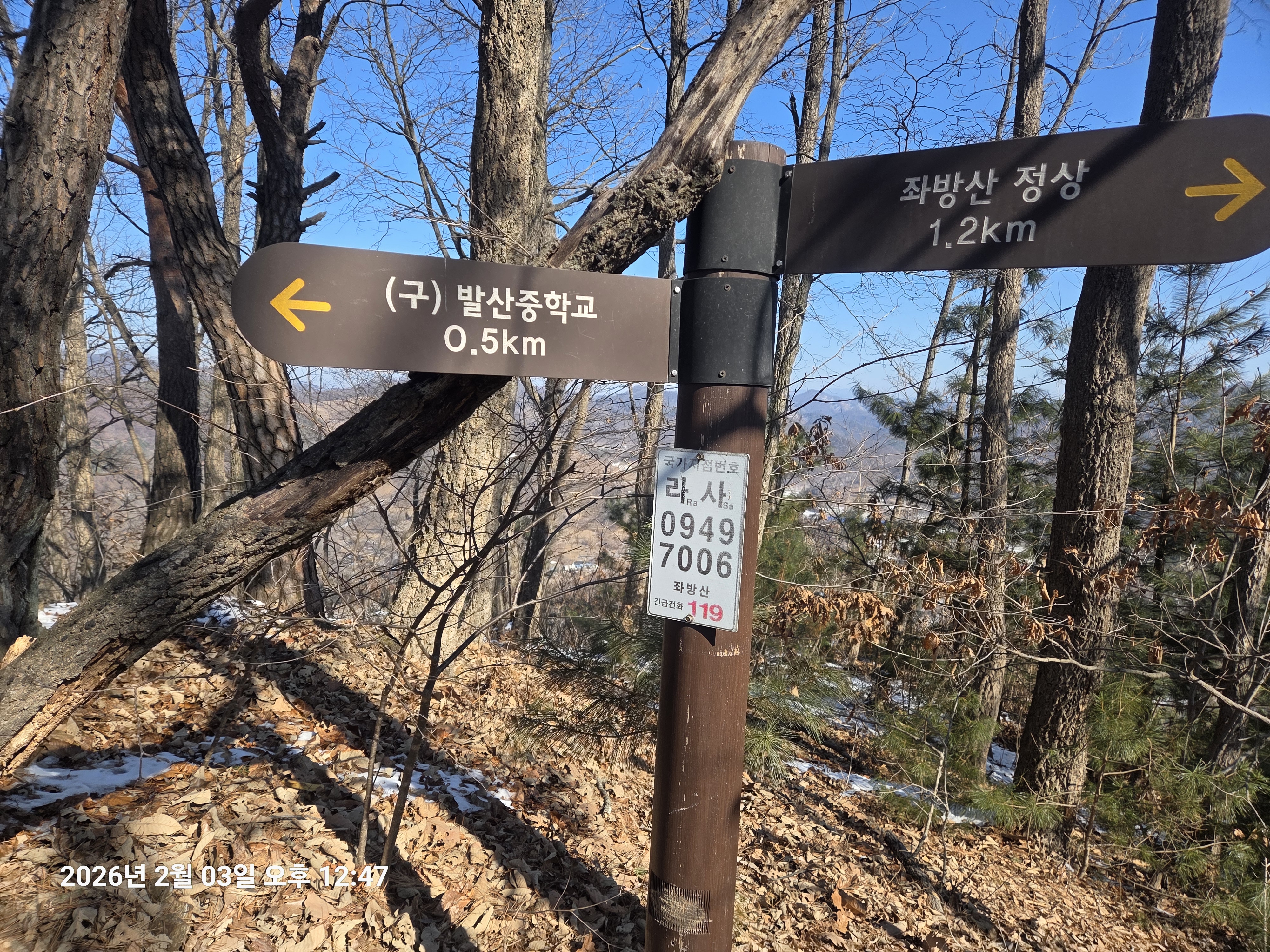 ▼ 좌방산 등산로 입구로 내려왔다.