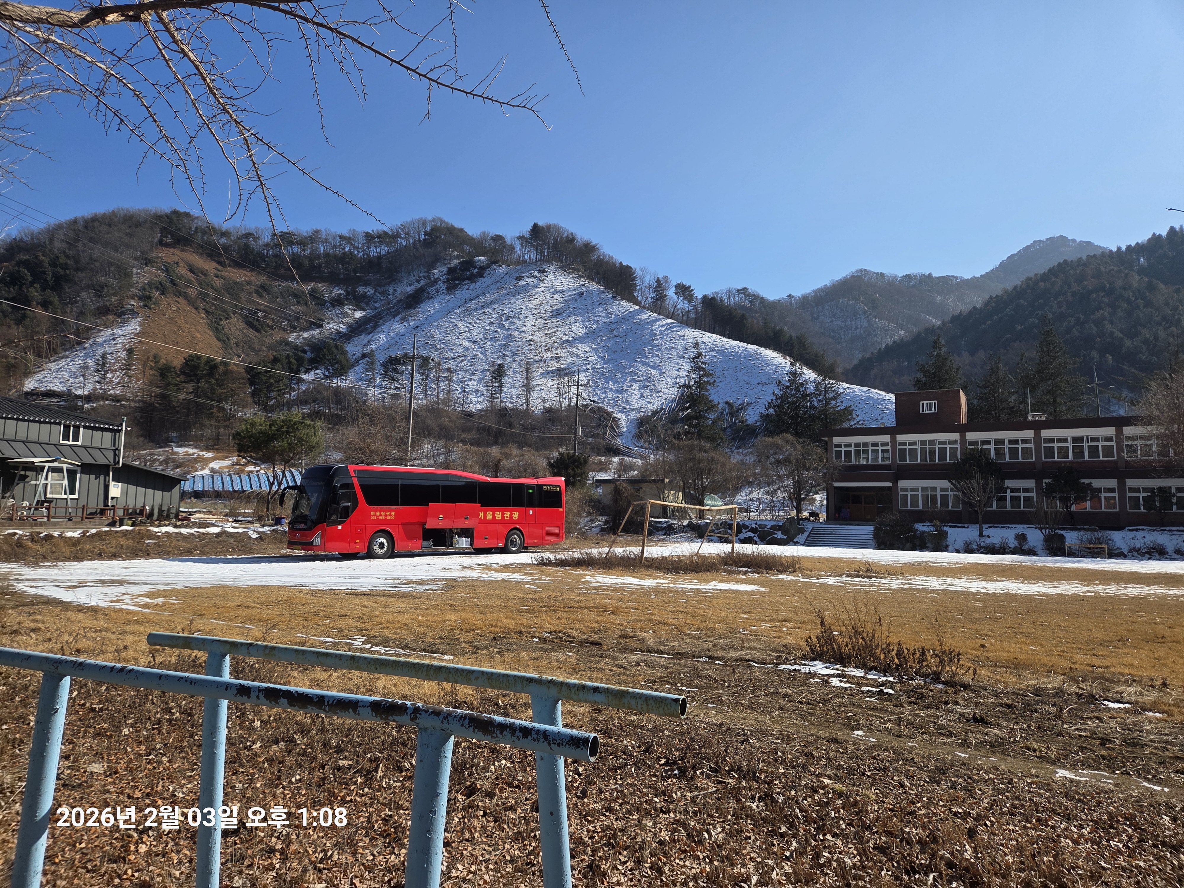 ▼ 윗 사진 우측 ; (구) 발산중학교 운동장에 산악회 버스가 있다.